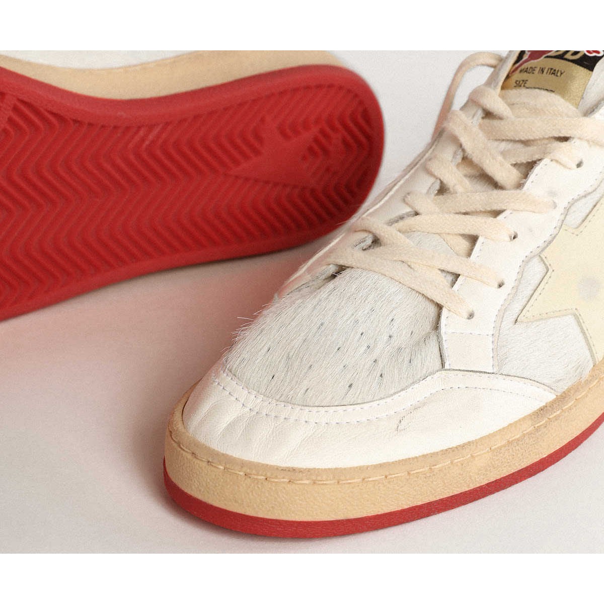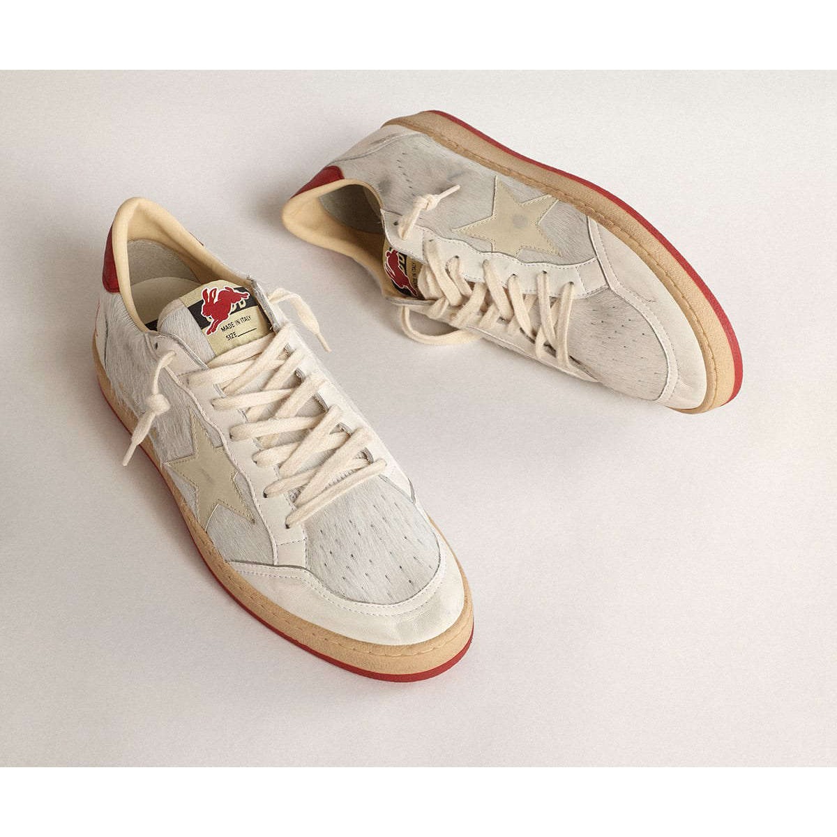 Golden Goose Men’s Ball Star Ltd CNY in weißer Pony Haut mit Lederstern