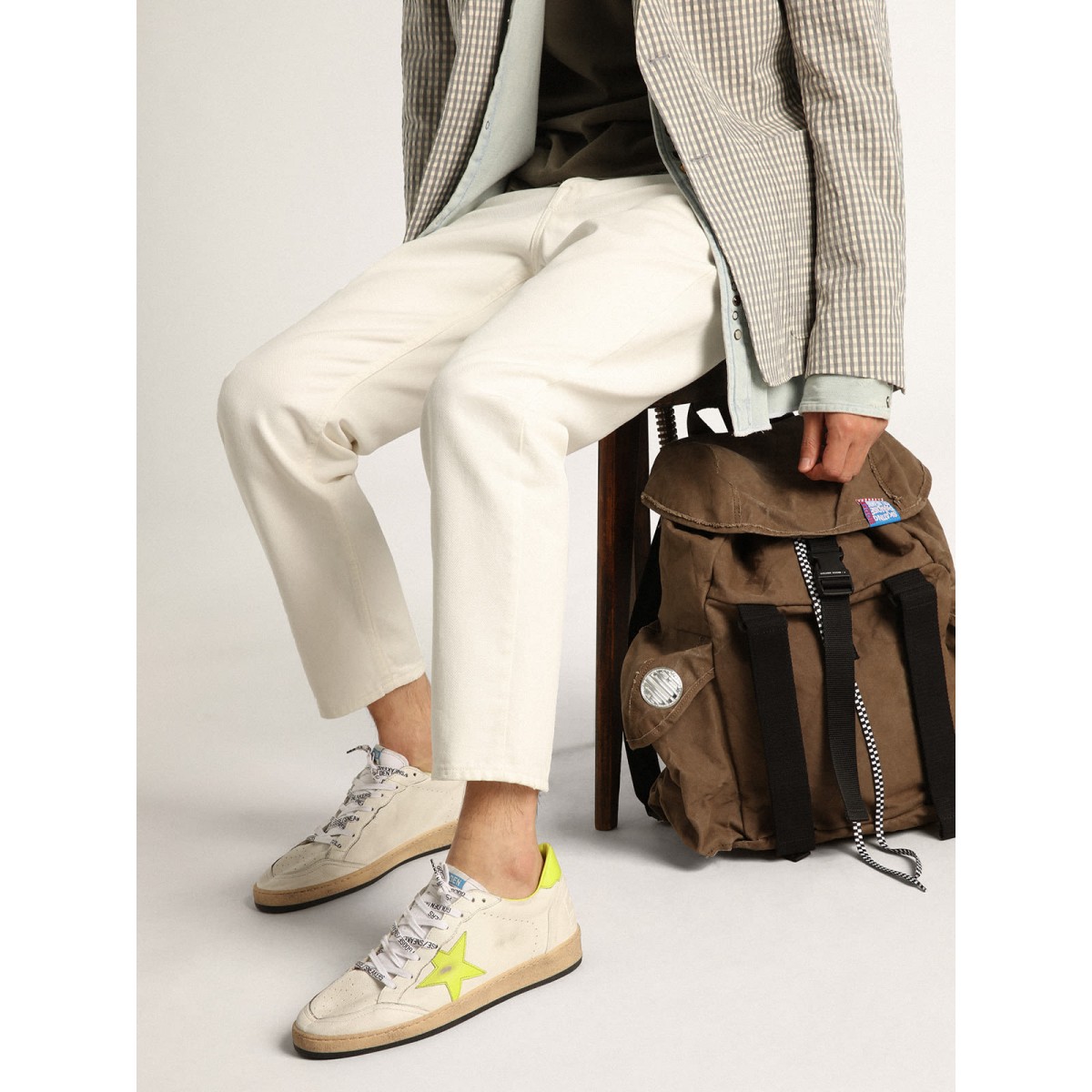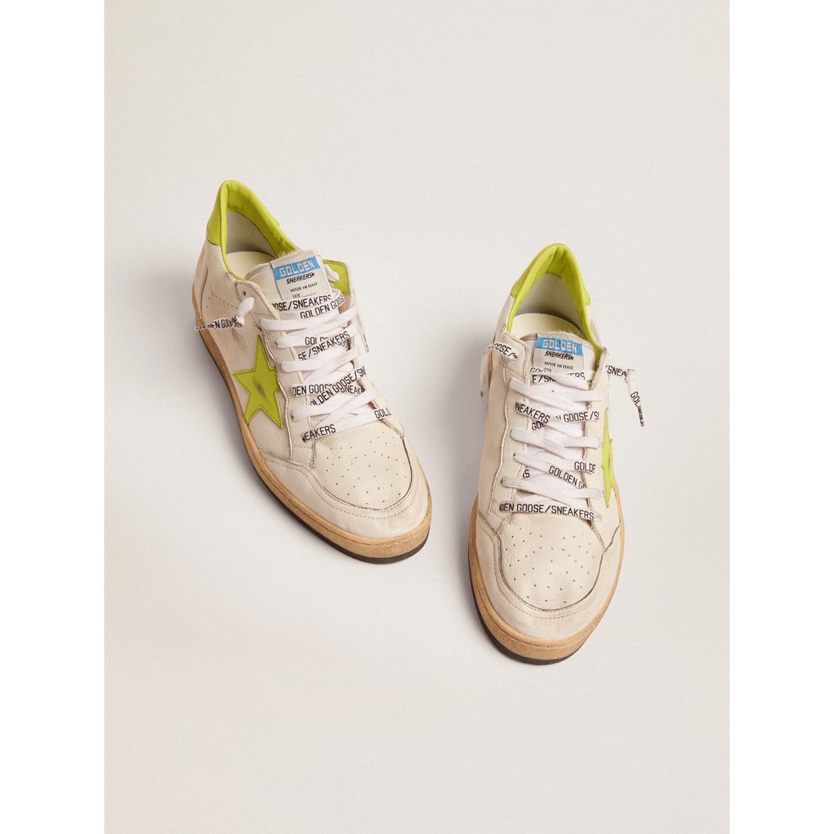 Golden Goose Ball Star Ltd Turnschuhe mit Limettengrün-Lederstern und Fersen-Tab GMF00117.f002608.10922
