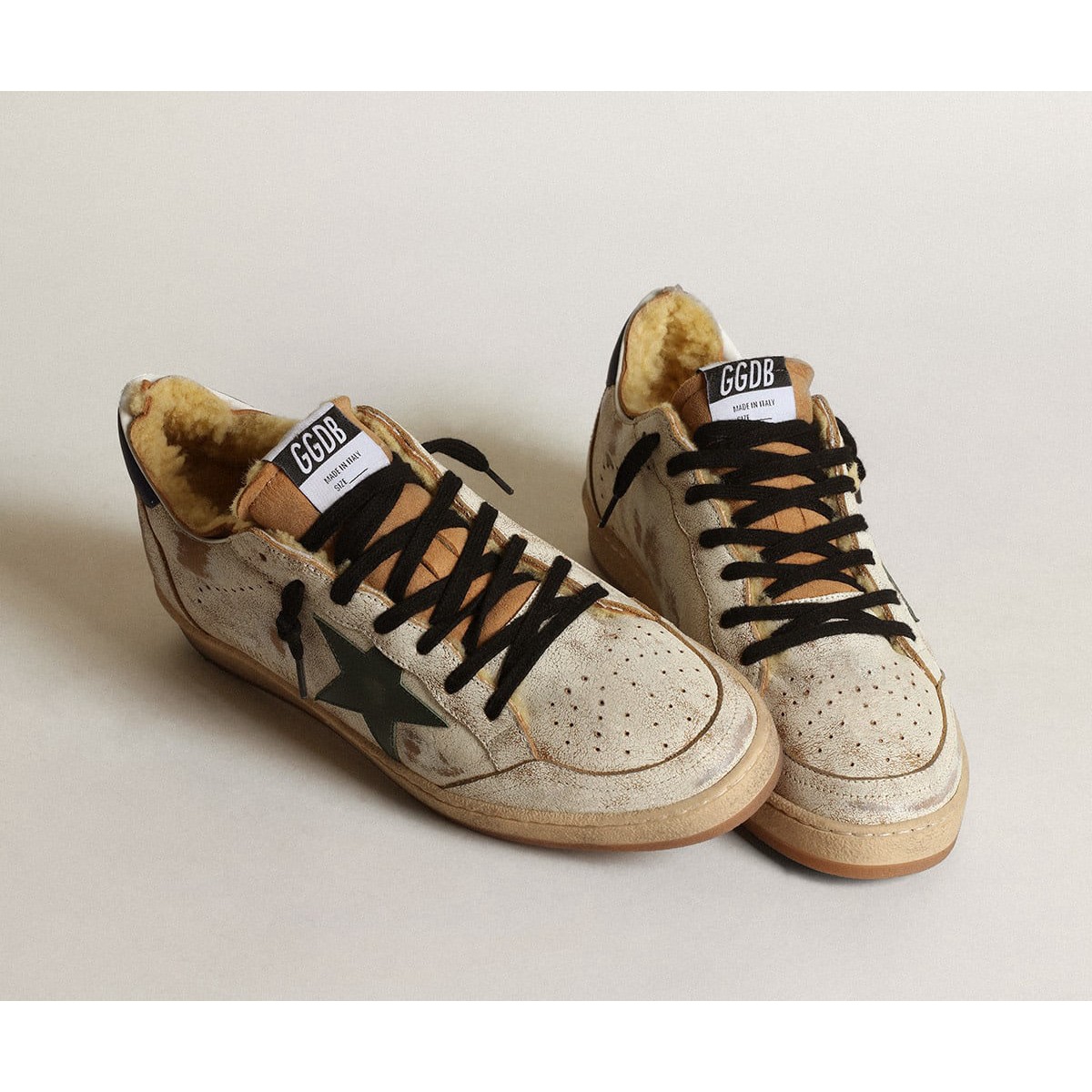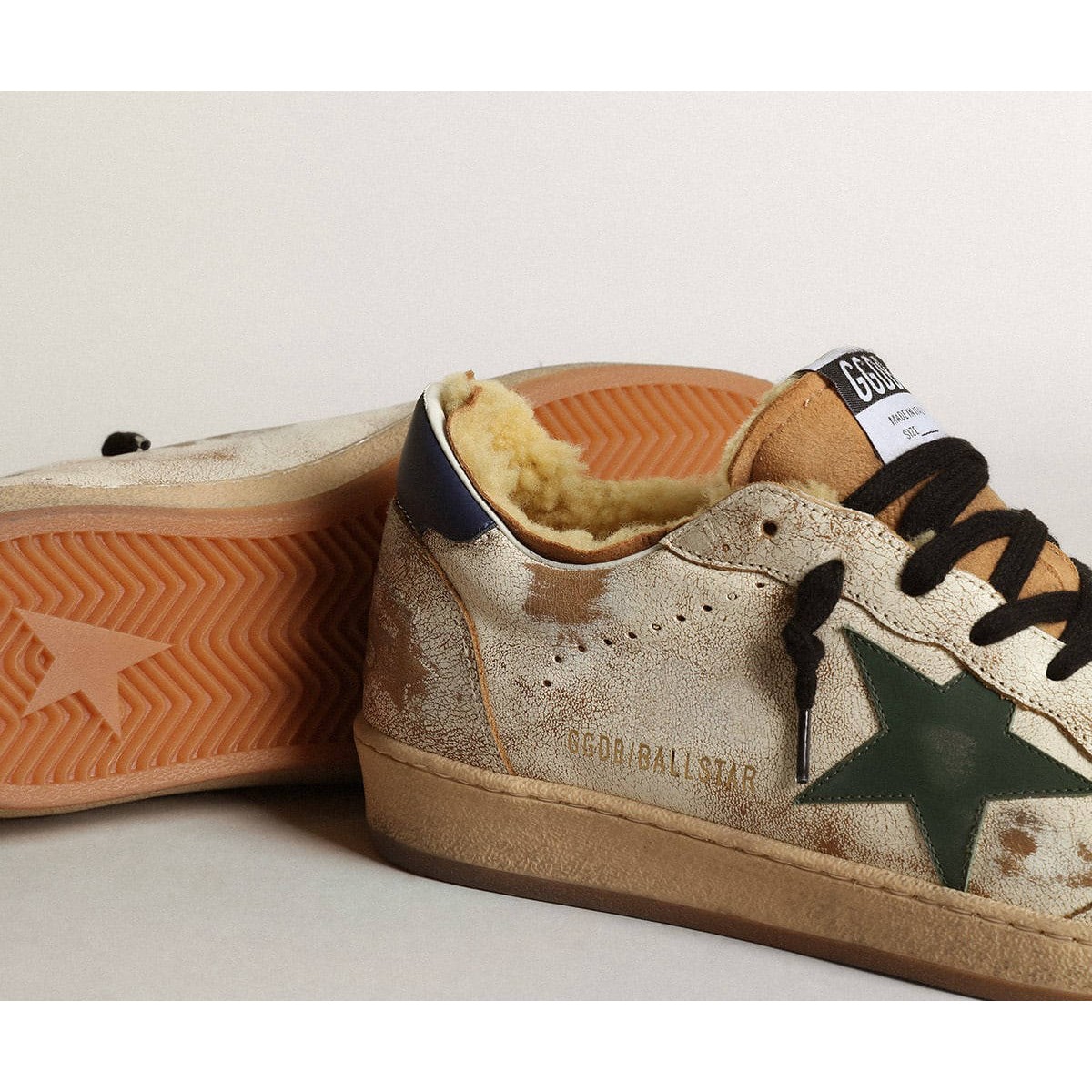 Be the first to review “Golden Goose Ball Star Turnschuhe in glänzendem weißem Leder mit dunkelgrünem Lederstern und Shearling Futter GMF00117.f003437.11248”