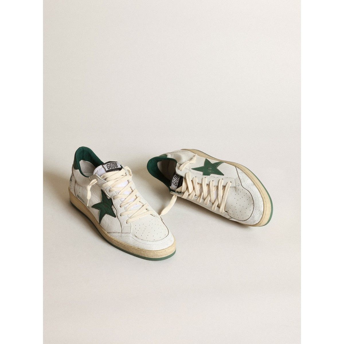 Von den achtziger Jahren träumen. Unsere Ballstar -Sneakers haben eine amerikanische College -Atmosphäre zwischen einem Reifenschuss und einer Skateboardfahrt. Dieses Modell mit einem weißen Nappa -Leder -Obermaterial verfügt über einen Stern und eine Fersenlasche aus grünem Leder und weißem Lederdetails wie dem Zeh und dem Einsatz auf der Rückseite. Eine grüne Sohle und cremefarbene Schnürsenkel Fügen Sie den letzten Schliff hinzu: Schöne Dinge, die niemals aus der Mode gehen. li>weißes Nappa-Leder-Obermaterial
