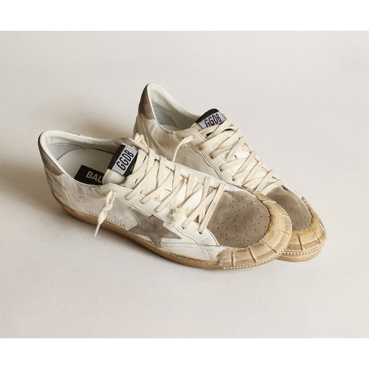 Golden Goose Ball Star Turnschuhe Ltd in weißem Nappa-Leder mit Dove-Gray Suede-Star und Ferse Tab GMF00351.f003457.10961