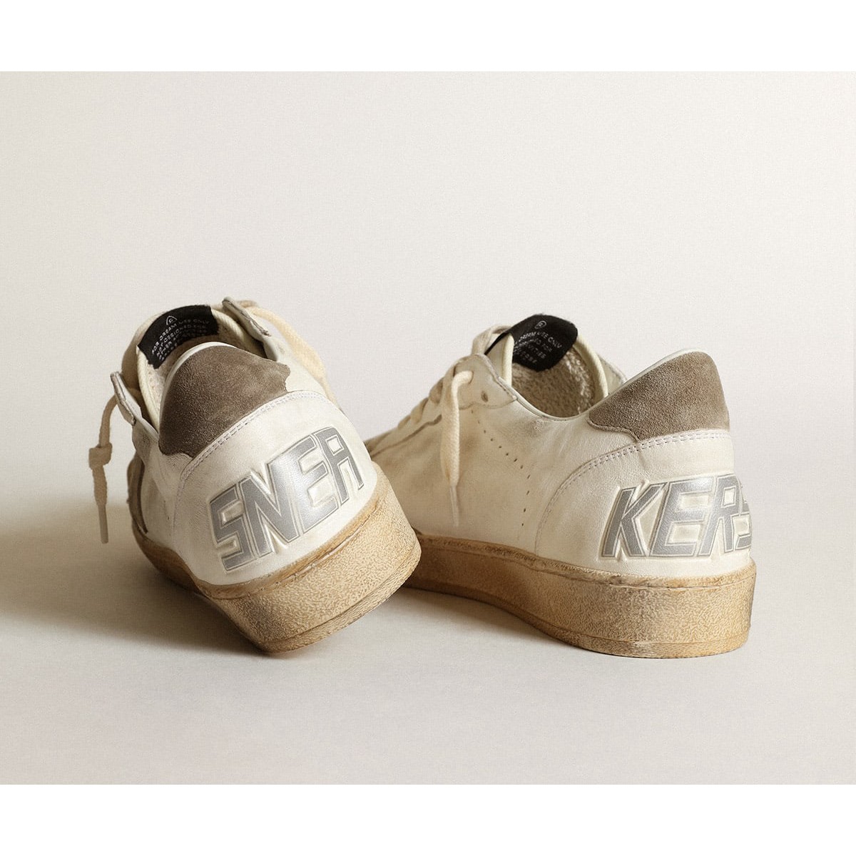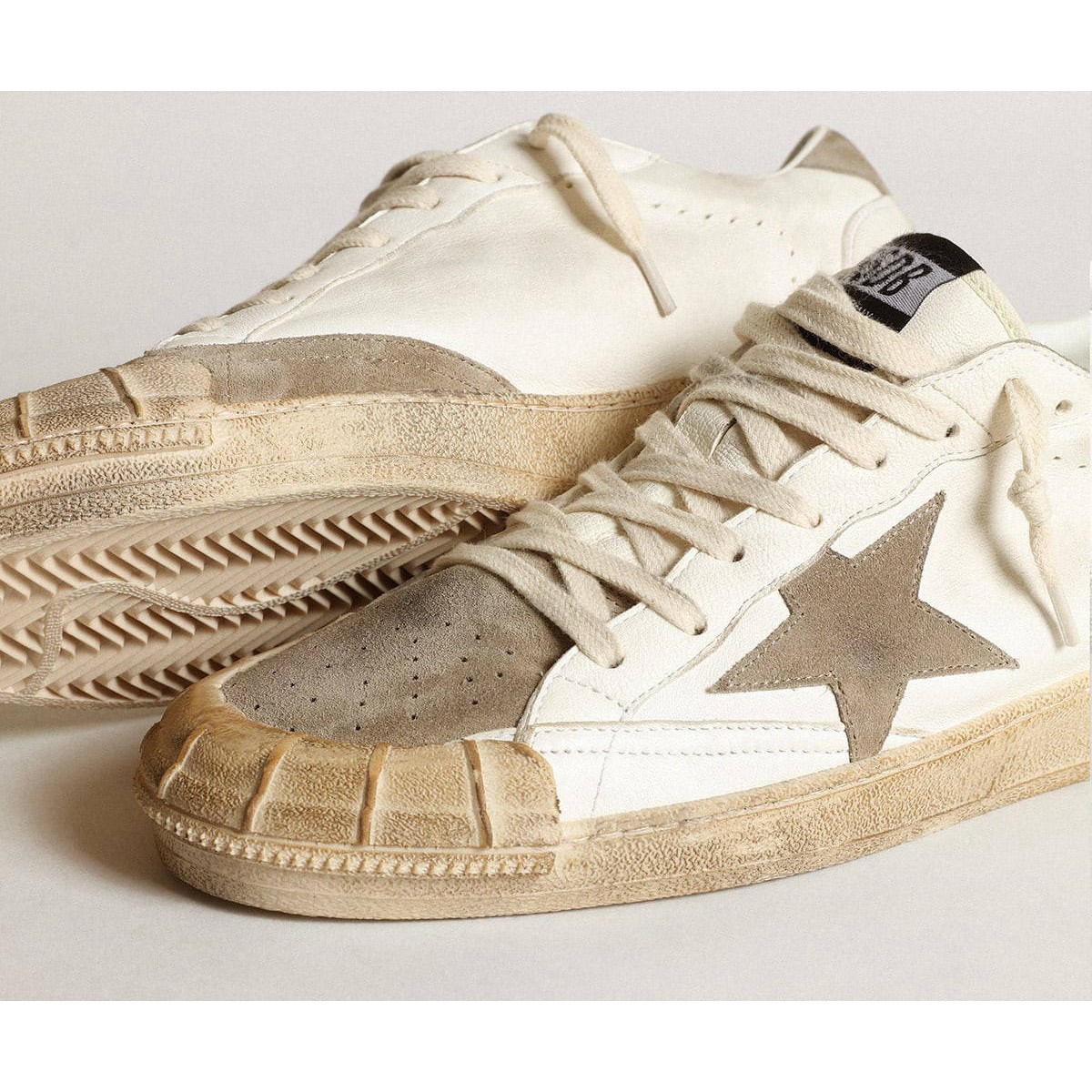Träume von den Achtzigern. Unsere Ballstar -Sneakers haben eine amerikanische College -Atmosphäre zwischen einem Reifenschuss und einer Skateboardfahrt. Mit einem weißen Nappa-Leder-Obermaterial enthält diese Männerversion dove-grau-Wildledereinsätze, einschließlich der Registerkarte Stern, Zehen und Fersen. Und die cremefarbenen Schnürsenkel fügen den letzten Schliff hinzu: Schöne Dinge, die niemals aus der Mode gehen.