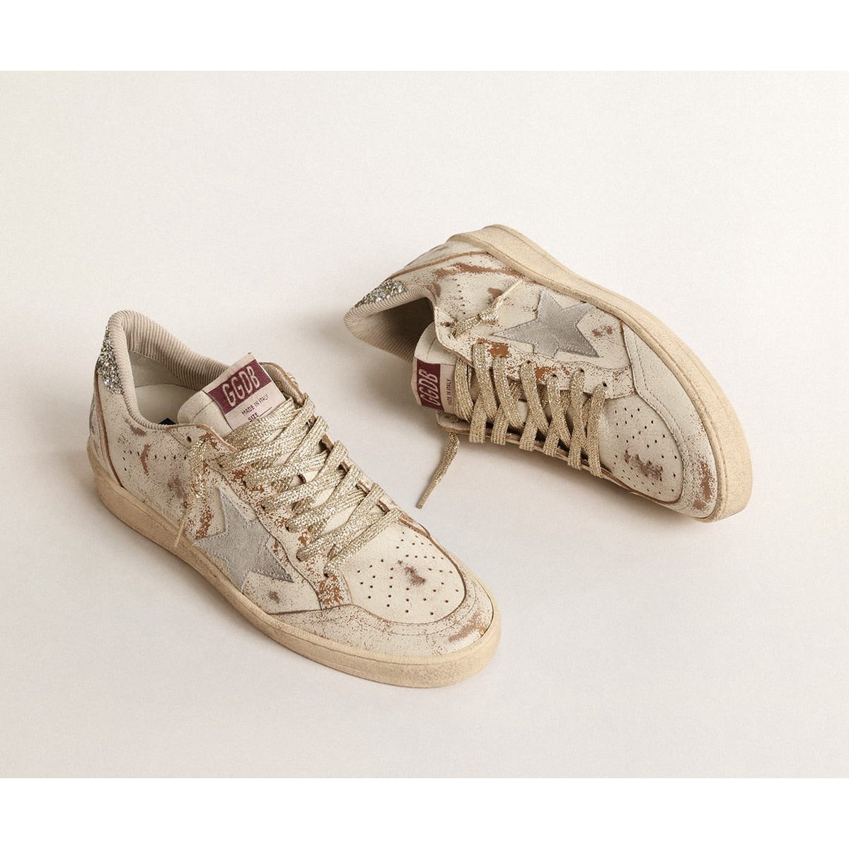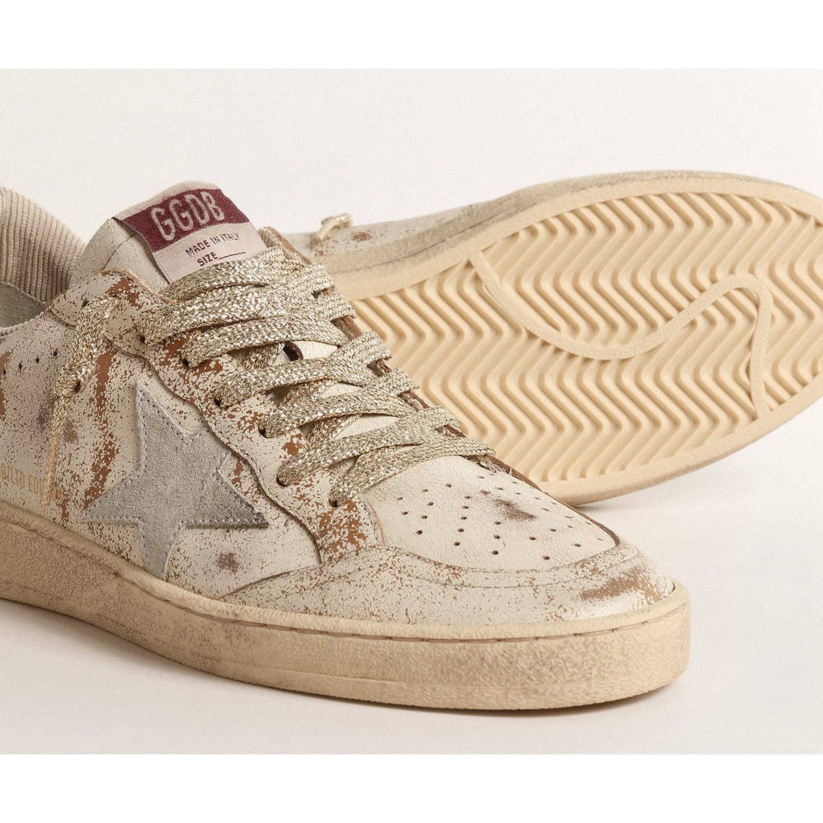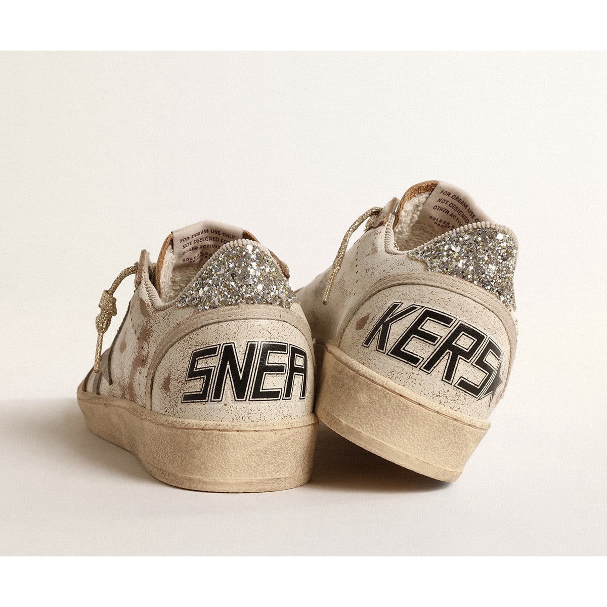 Golden Goose Women’s Ball Star Sneakers Ltd mit Wildlederstern und Platin -Glitter -Absatz Tab GWF00117.F004609.81194