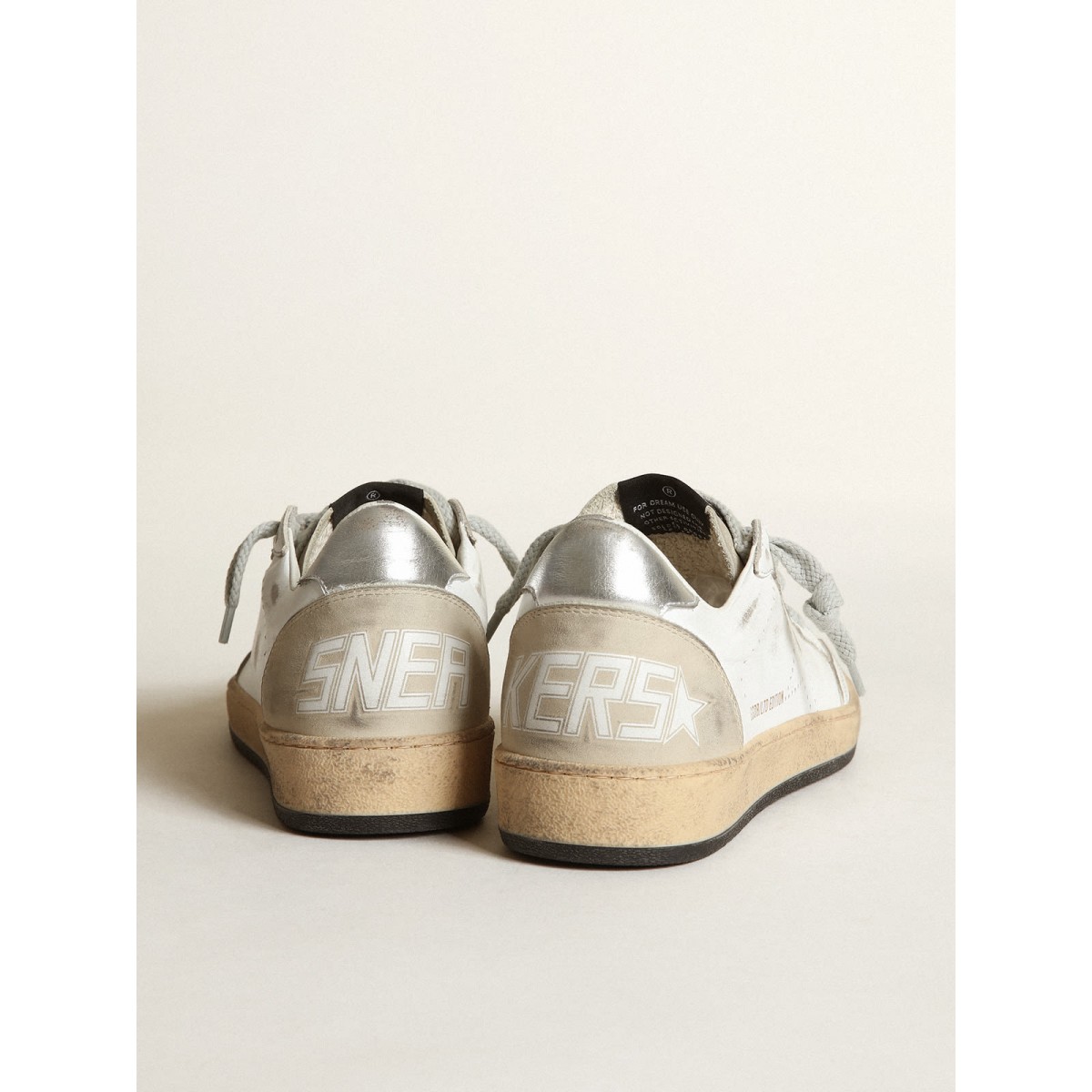 Von den achtziger Jahren träumen. Unsere Ballstar -Sneakers haben eine amerikanische College -Atmosphäre und ein Gefühl der Basketball -Szene zu dieser Zeit. Diese nummerierten Labor-Sneaker in limitierter Auflage verfügen über einen weißen Leder-Obermaterial und einen ton-on-Ton-Perforated-Stern. Spitzenzubehör mit mehrfarbigen Kristallen verleihen den eisgrau gefärbten Schnürsenkeln einen einzigartigen Hauch von Glanz. Die Zunge in eisgrauem Nubuck mit Perforationen am Zeh, der silbernen metallischen Lederabsatzlasche und dem Eisgrau-Nubuck-Einsatz auf der Rückseite vervollständigen den Look. GWF00243.F003143.10276