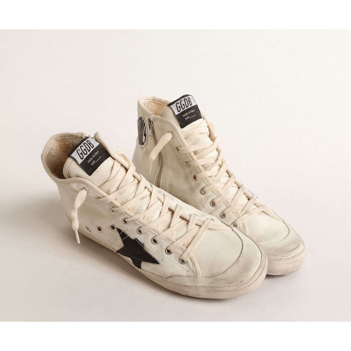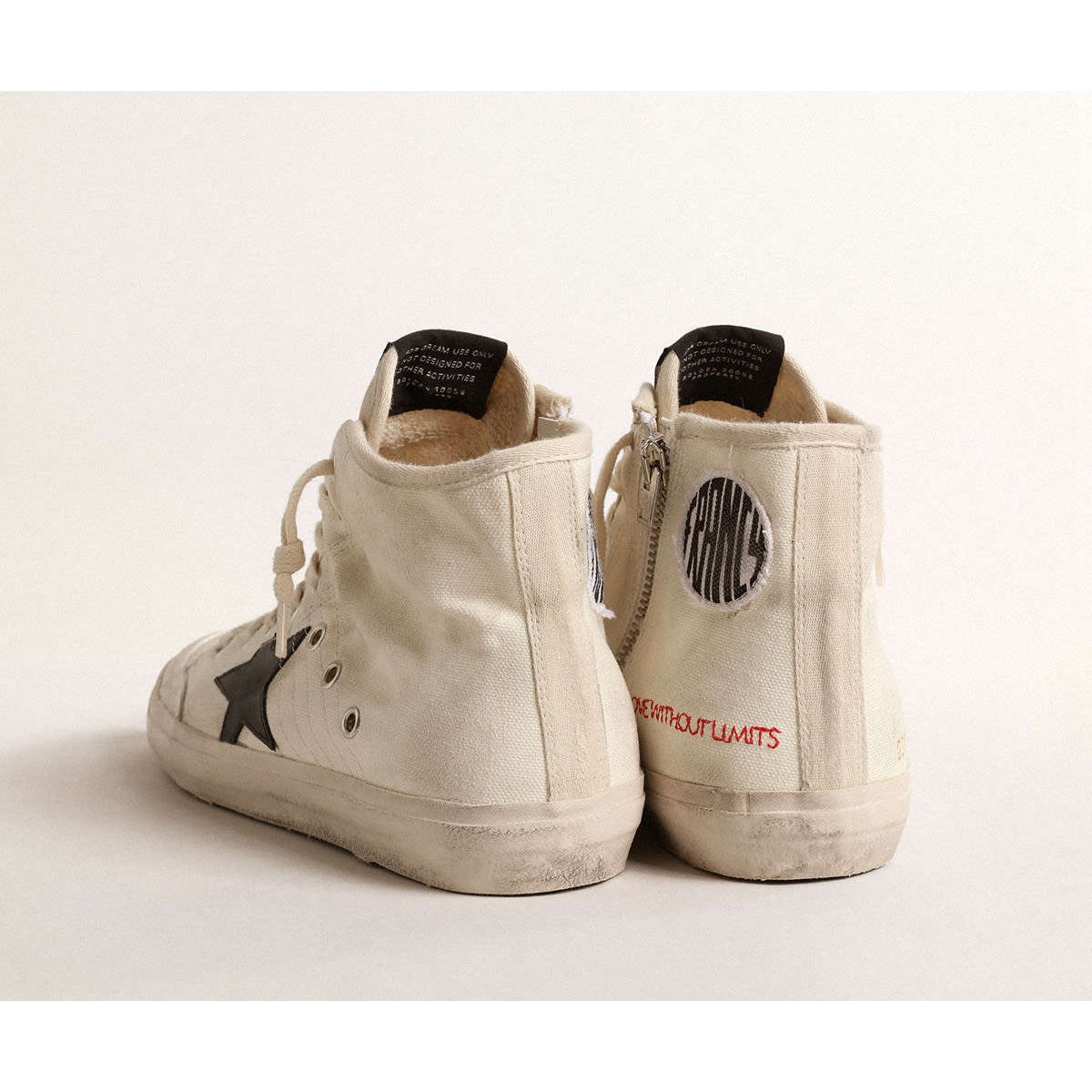 Die siebziger Jahre: Inspiriert von der Welt des Basketballs, wird der Stil der Francy -Sneakers mit unerwarteten Details und besonderen Oberflächen aktualisiert. Diese Turnschuhe mit einem mit Milch-weiß-weiß-Baumwoll oberen Leinwand verfügen über einen schwarzen Lederstern und einen Ton-auf-Ton-Tone-Baumwollabsatz. Der Schriftzug mit roten Nähten und milchweißen Schnürsenkel vervollständigen den Look.