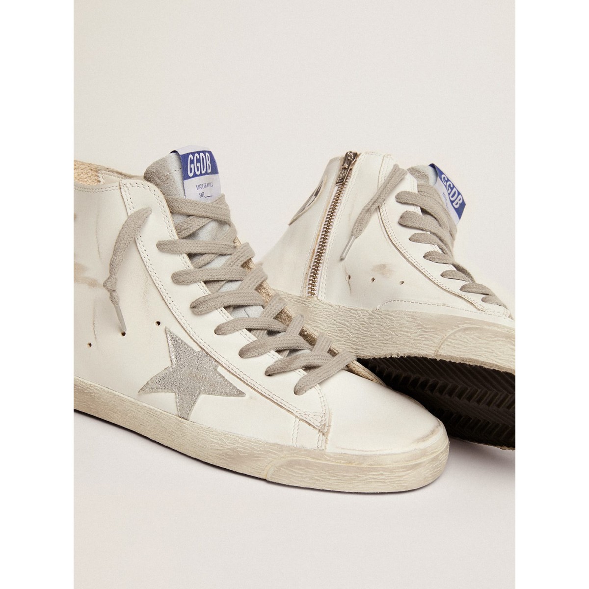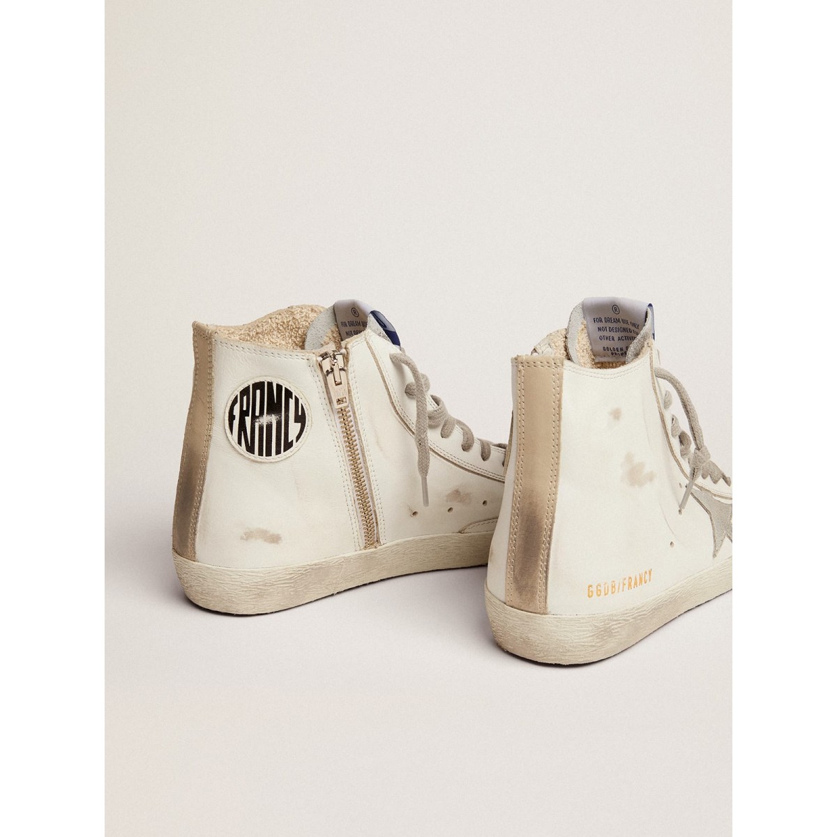 Die Basketballwelt hatte immer einen starken Einfluss auf unsere Sammlungen. Francy ist ein Vintage -Stil, der von den 70ern mit exklusiven Details und Oberflächen von goldenen Gans beeinflusst und inspiriert wird. li>Kalbskin -Obermaterial