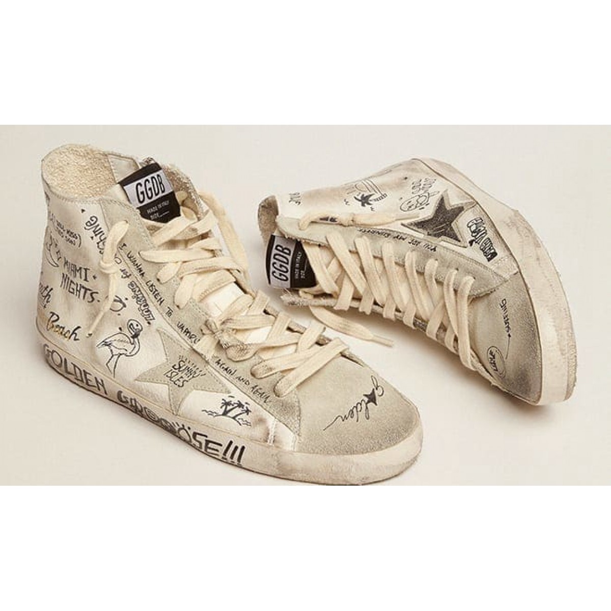 Be the first to review “Golden Goose Francy Turnschuhe in Nappa mit eisgrauem Wildlederstern und schwarzer Schriftzug GWF00113.F002669.10220”
