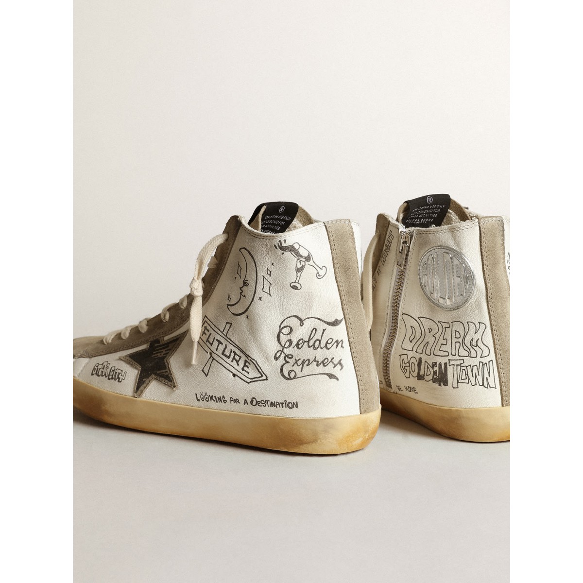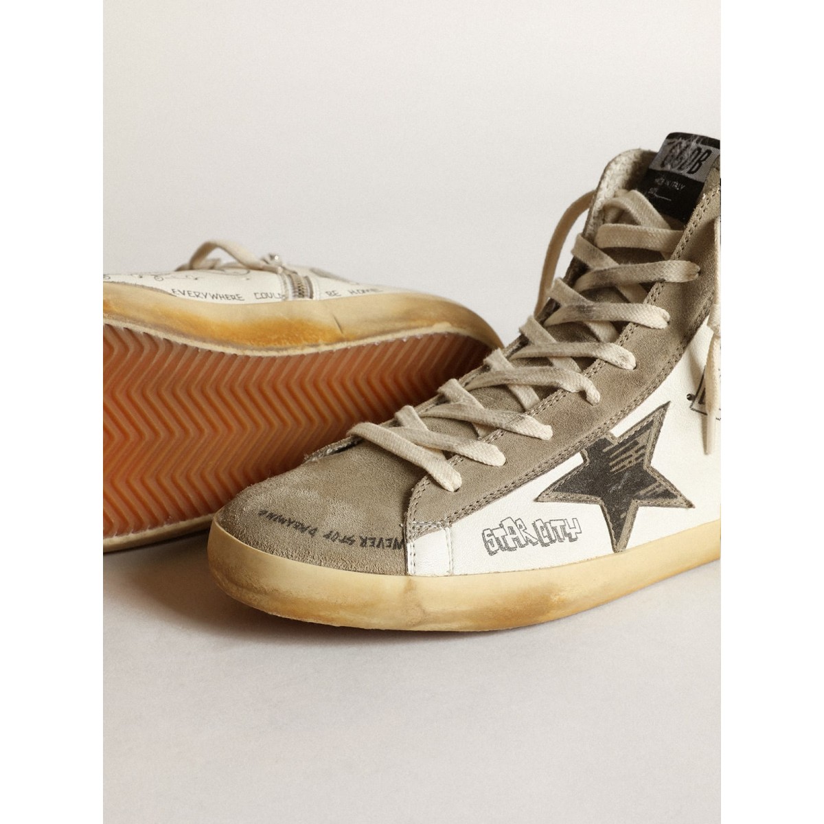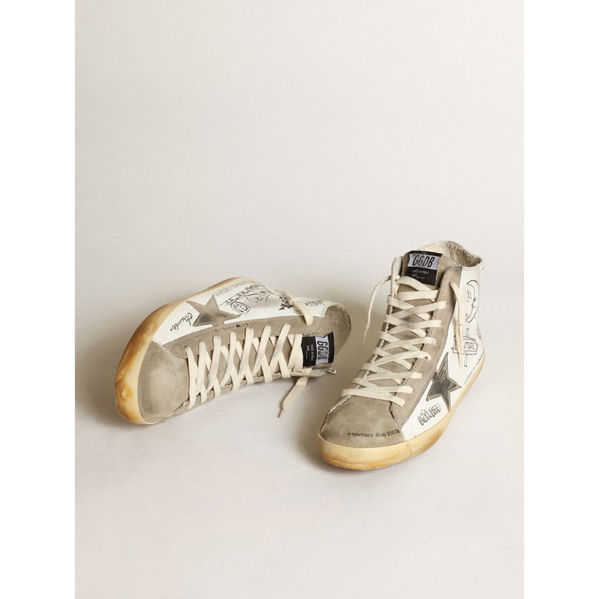 Golden Goose Francy Turnschuhe mit Taubengrau Wildledereinsätzen und All-Over Black-Schriftzug GMF00113.f003441.81572