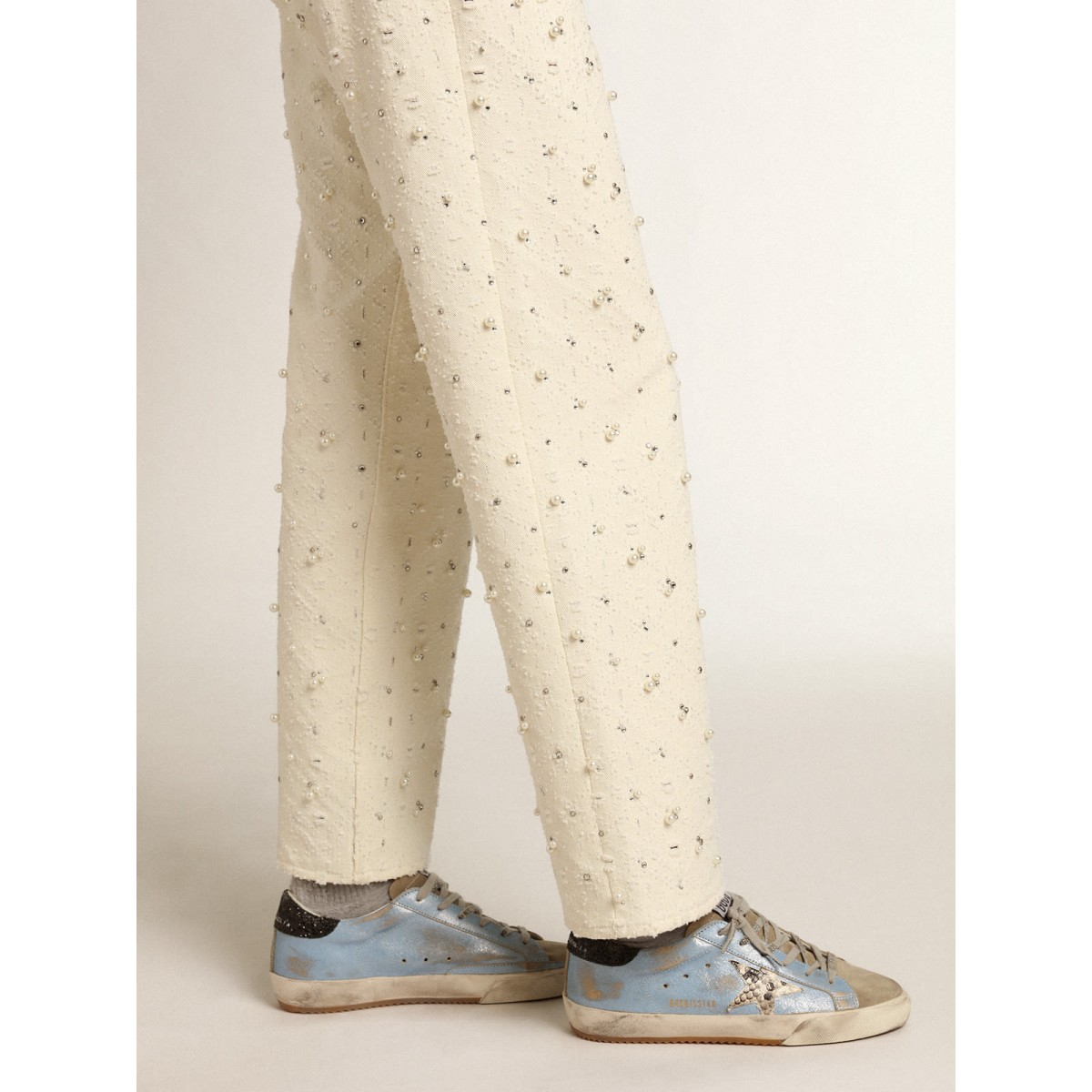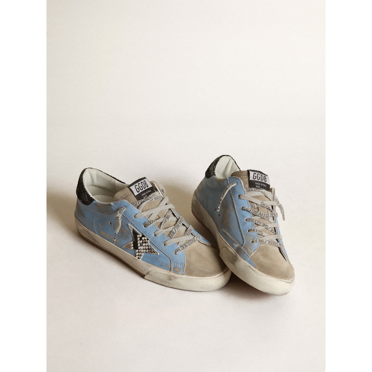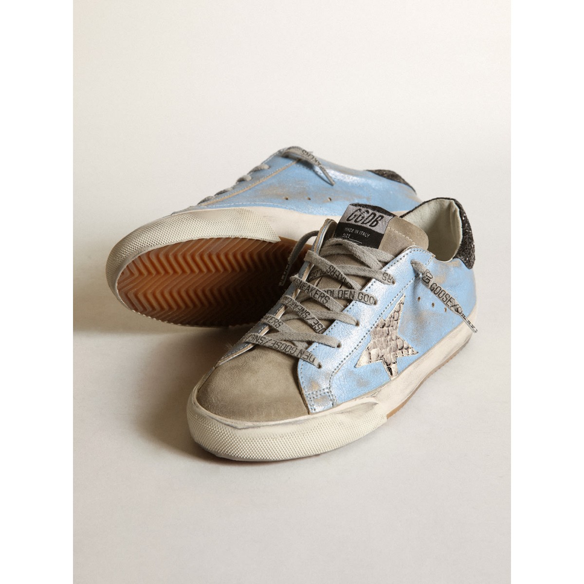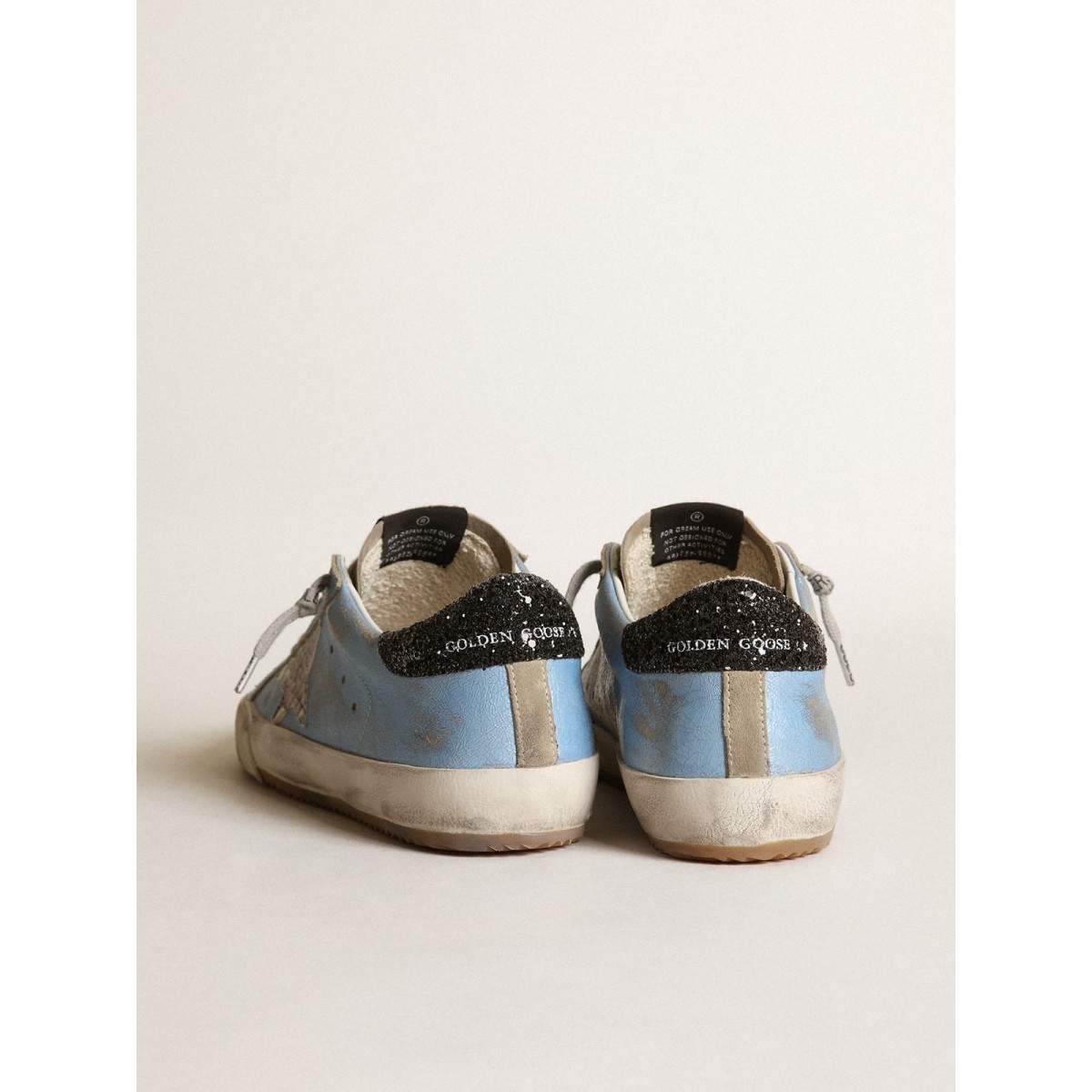 Golden Goose Hell Blue Super-Star mit einem grauen Stern und Glitzerabsatz Tab GWF00101.f003406.50712