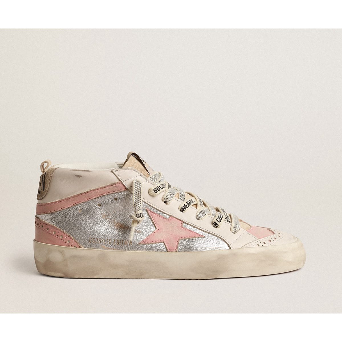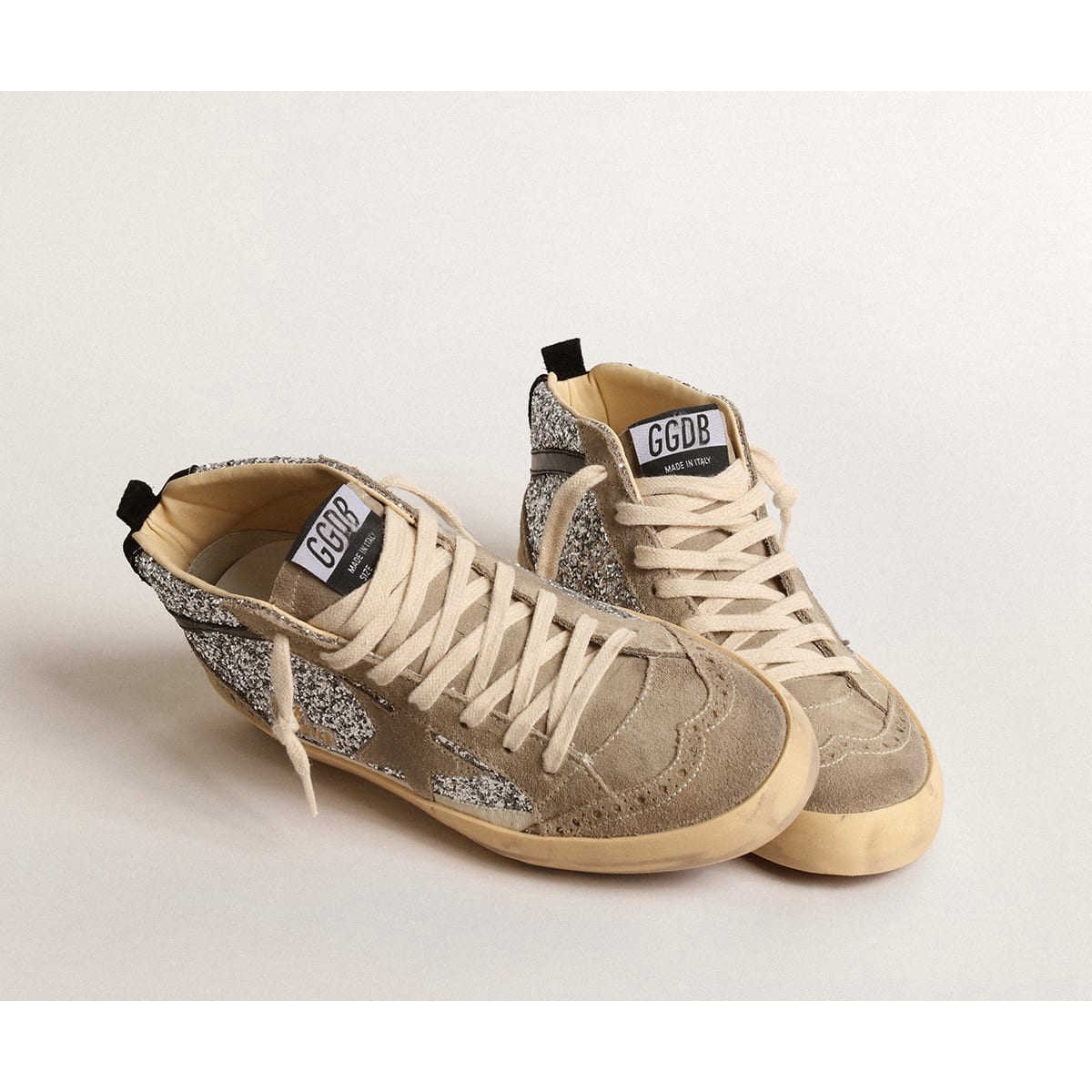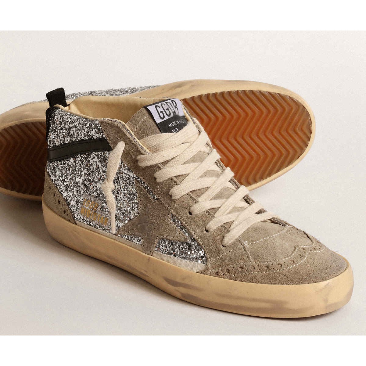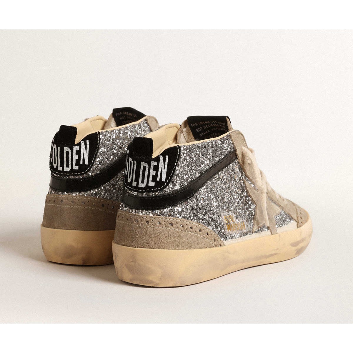 Golden Goose Women’s Mid Star in Silver Glitter mit Wildlederstern und Black Flash
