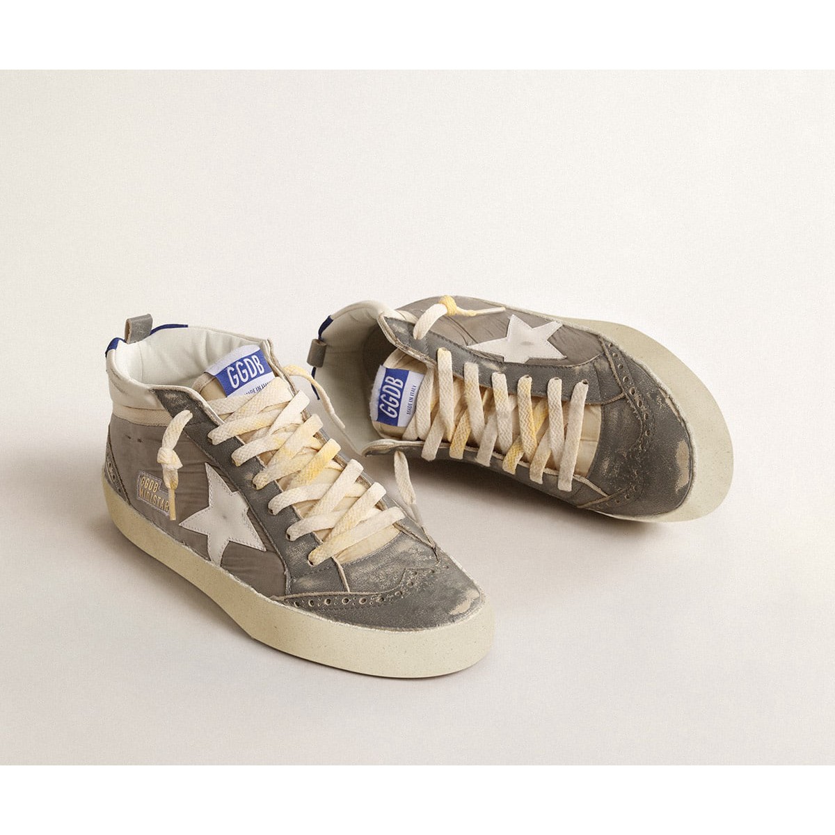 Golden Goose Herren Mid Star -Sneakers in grauem Nylon und Nappa -Leder mit weißem Lederstern GMF00123.f004592.60437