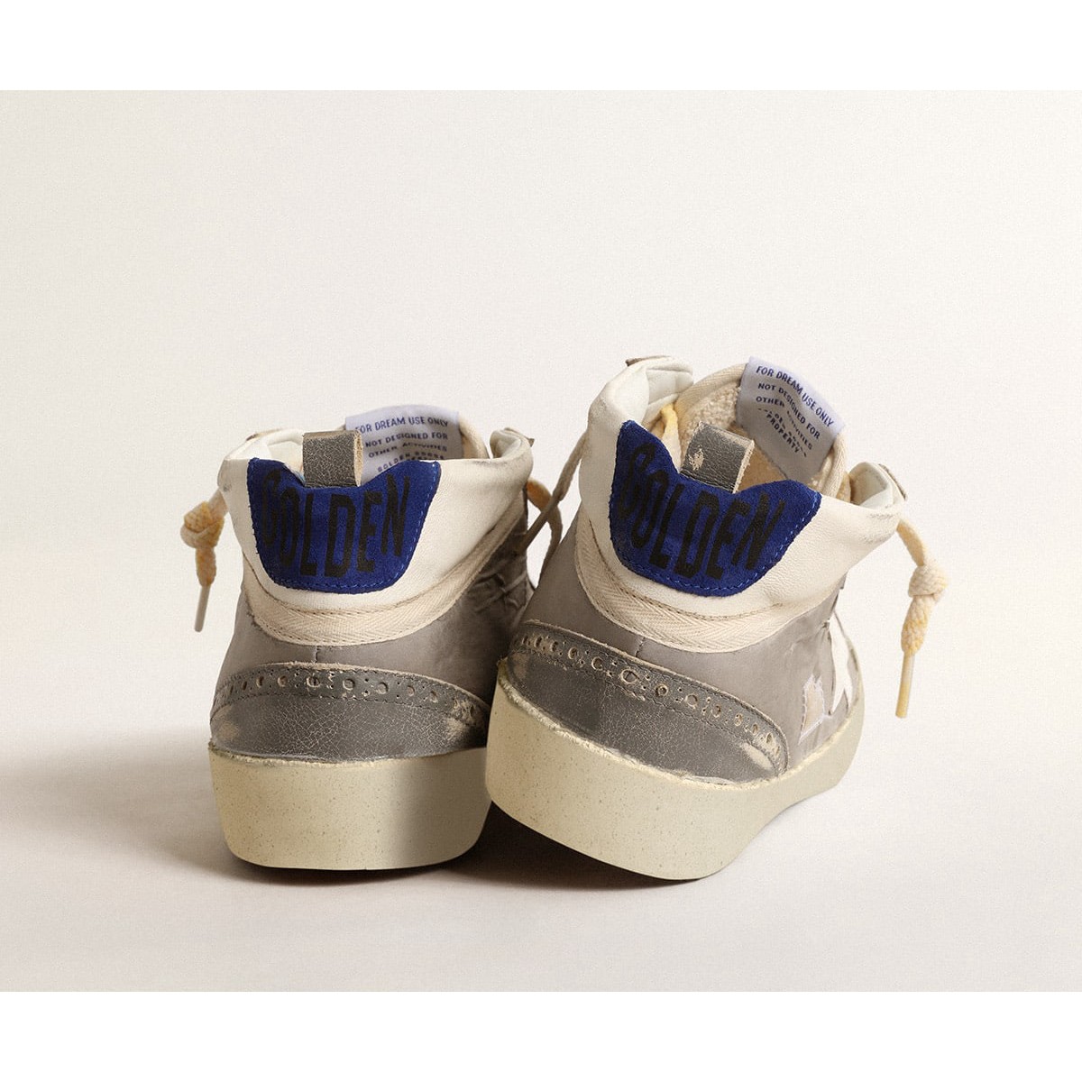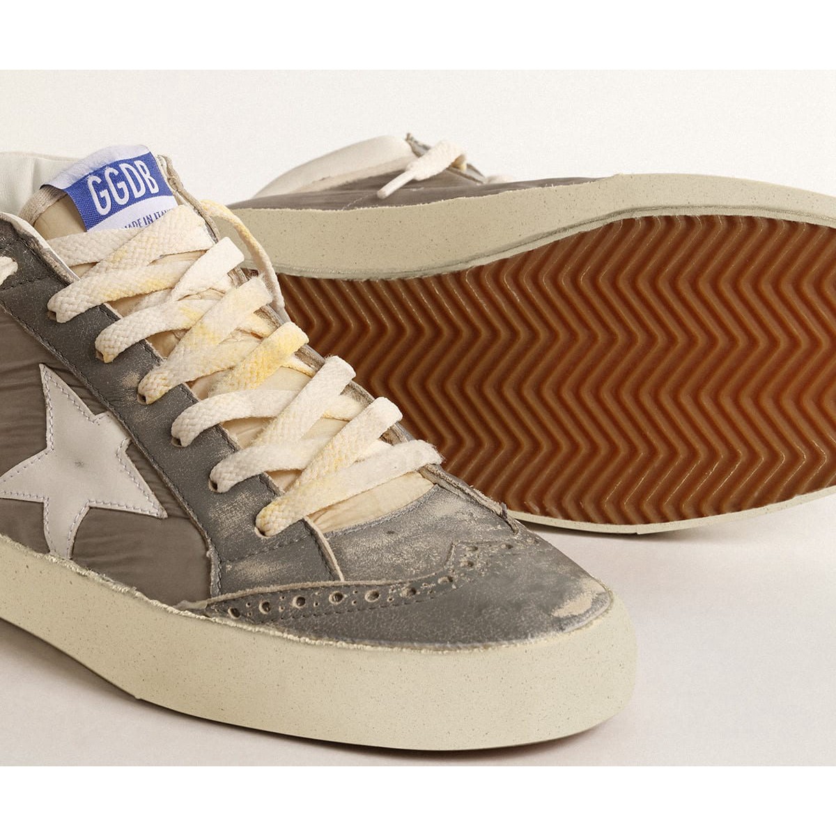 Eindeutig elegante Vielseitigkeit: Die Mid Star Sneakers Take A Reprinided Herangehensweise an ihre neunziger Jahre Inspiration in Inspiration. Mit einem grauen Nylon und einem weißen Nappa-Leder-Obermaterial mit grauen Ledereinsätzen mit Vintage-Wirkung verfügt dieses Modell über einen weißen Lederstern und einen cremefarbenen Baumwollblitz. Die Blue Suede Ferse Tab und cremefarbene Schnürsenkel vervollständigen den Look. Weißes Nappa-Leder-Obermaterial