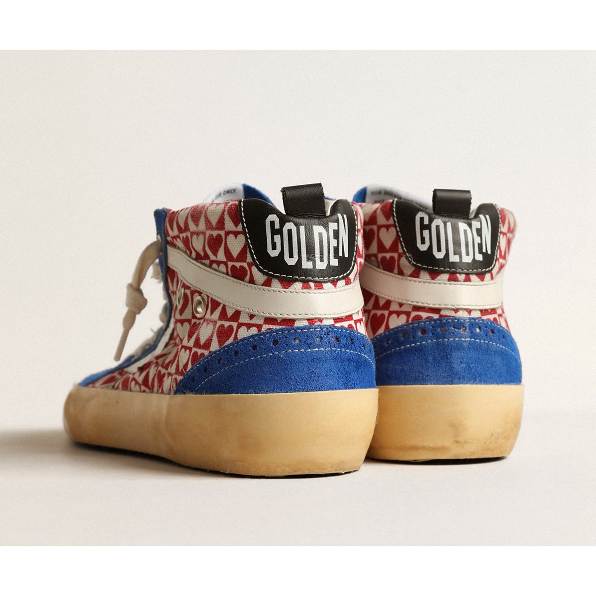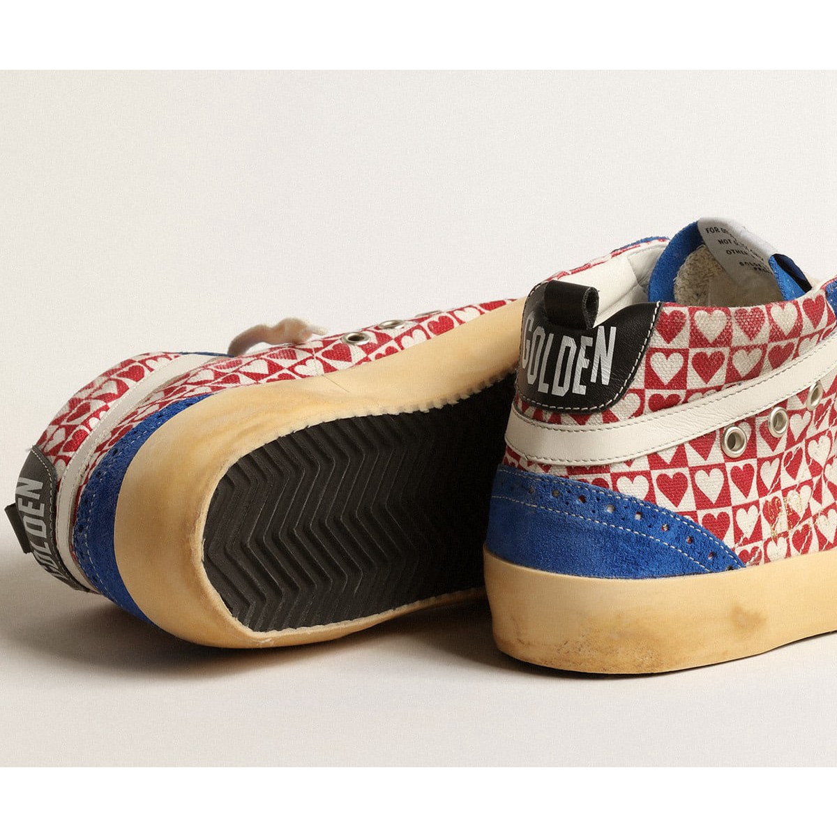 Eindeutig elegantes Vielseitigkeit: Die Mid -Star -Sneaker nehmen eine raffinierte Herangehensweise an Ihre achtziger Skate -Szene Inspiration. Dieses Herrenmodell mit einem rot-weißen Check- und Herzabdruck-Leinwand-Obermaterial verfügt über einen silbernen Laminat-Lederstern und cremefarbene Lederblitz. Die blauen Wildledereinsätze, die schwarze Lederabsatzlasche und cremefarbene Schnürsenkel vervollständigen den Look.>Rot-weiß-Check- und Herzabdruck-Leinwand Obermaterial