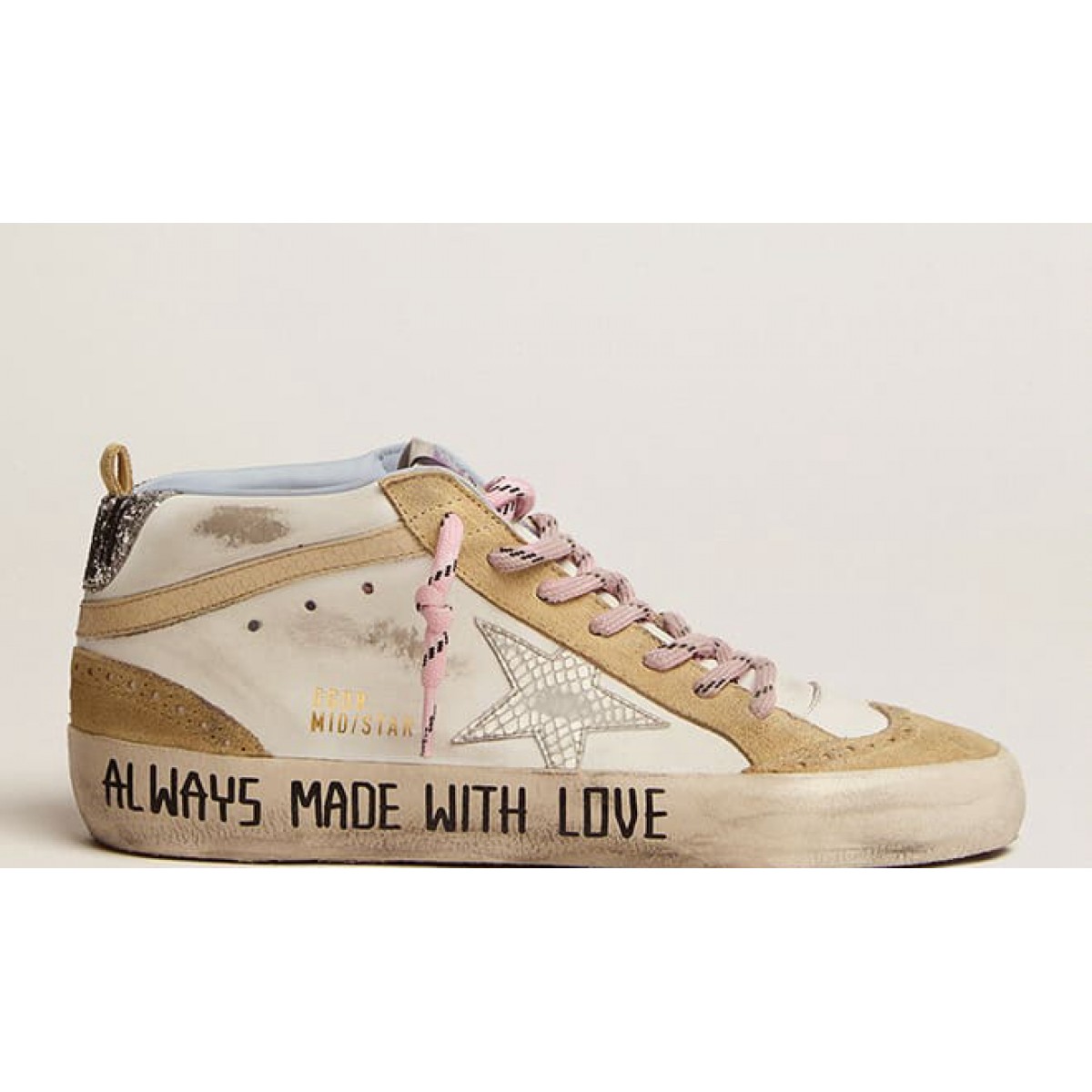 Golden Goose Herren Mid Star -Sneaker in Leinwand mit Herzdruck und Silberstern GMF00122.f004022.82122