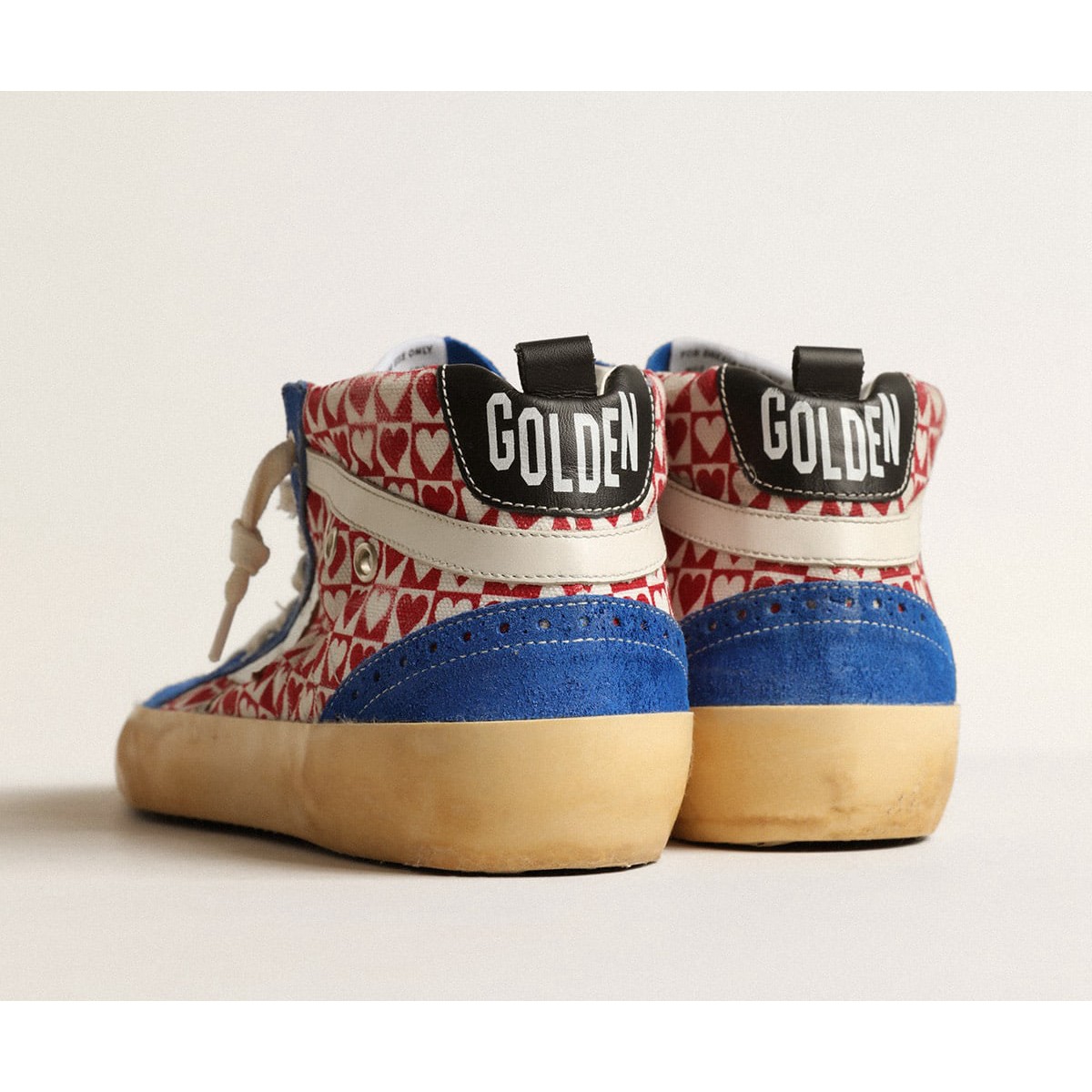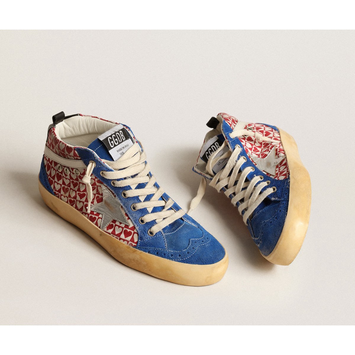 Golden Goose Damens Mid Star Sneakers in Leinwand mit Herzdruck und Silberstern GWF00122.f004022.82122