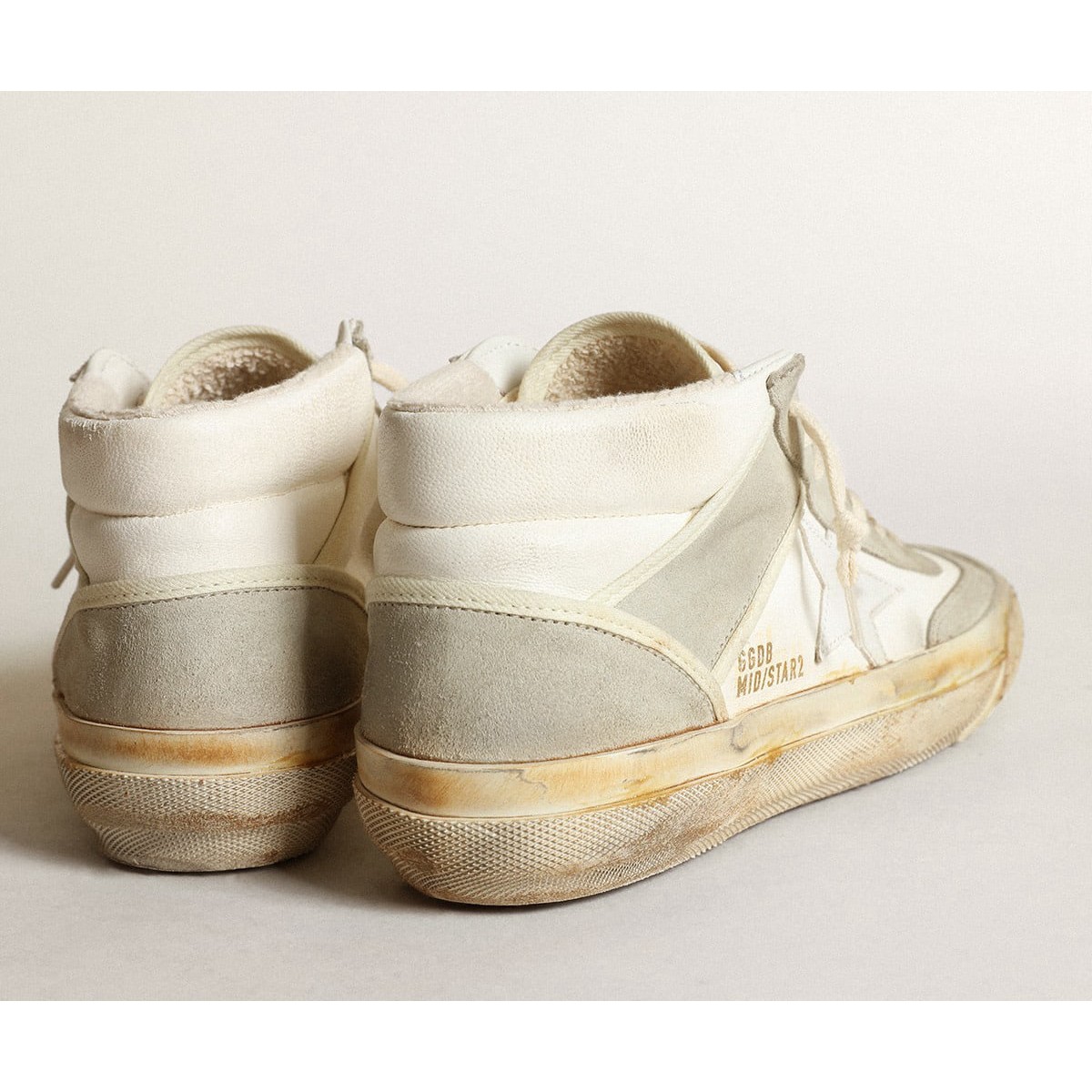 Golden Goose Mid Star Turnschuhe mit eisgrauen Wildledereinsätzen und weißer Lederstar GWF00408.f003449.10276