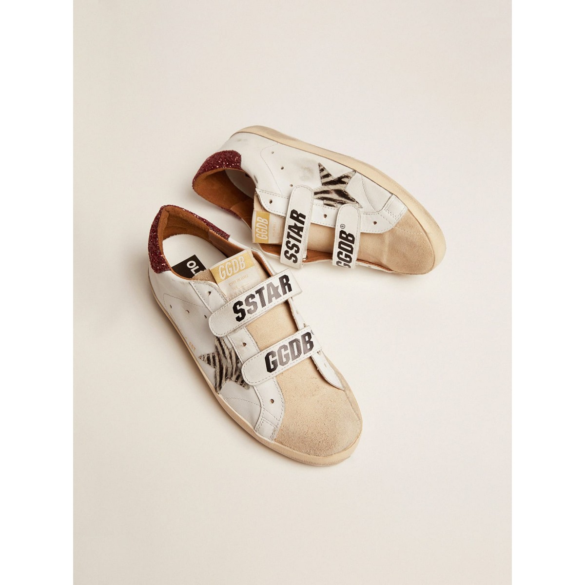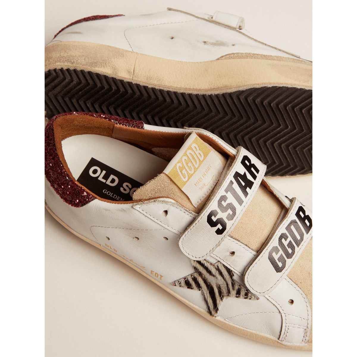 Golden Goose Old School Turnschuhe mit Zebra-Print Pony Skin Star Star und roter Glitzerabsatz Tab GWF00111.f002153.10798