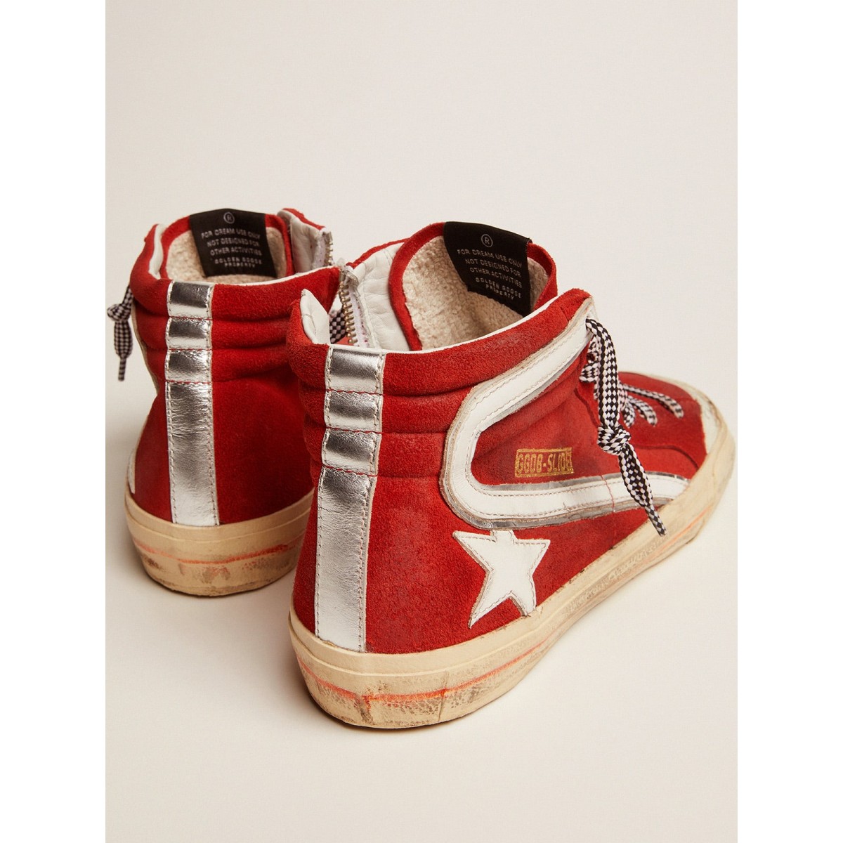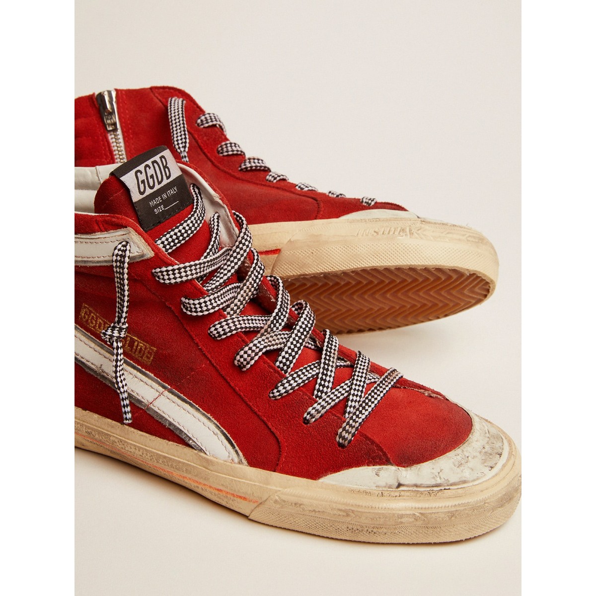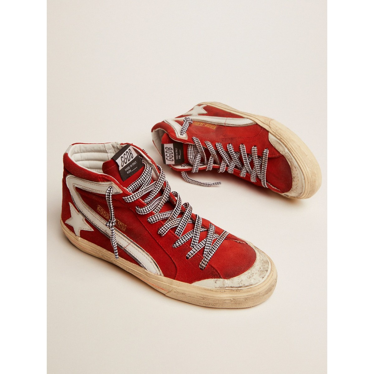 Golden Goose Penstar Slide Turnschuhe in rotem Wildleder mit weißen Details GMF00211.f001725.40388