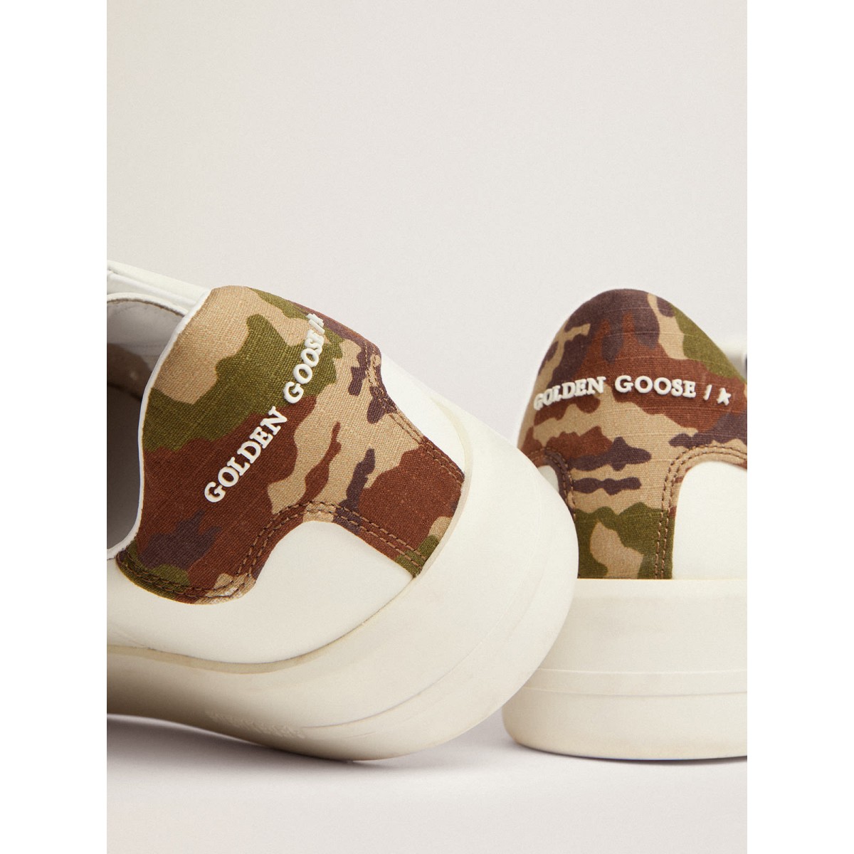 Wenn der Minimalismus der Form der Stärke der Details entspricht: Unsere Purestar-Turnschuhe kombinieren dank ihrer schockabsorbierenden Technologie einen zurückhaltenden Stil mit extremem Komfort. Dieses Modell in weißem Leder ist mit einem Ton-auf-Ton-Leder-Stern und einer Grünen-Fersen-Fersen-Registerkarte in Ripstop-Stoff verziert. .10267