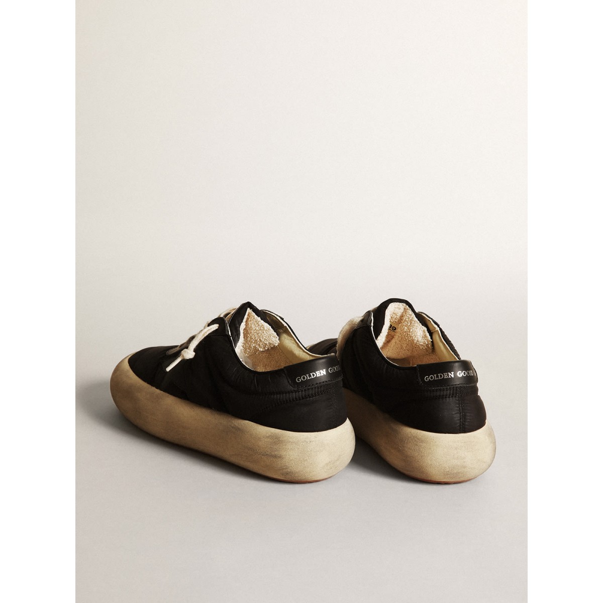 Ihr neuer Moment, um sich von der Realität zu lösen und Ihr Zentrum zu finden. Ihre neue Art, sich zu sich selbst zu melden und Ihre eigene Leichtigkeit zu atmen – fliegen wie nie zuvor. Gemütliche Weltraumschuhe verfügen über die extra Kissensohle und die mit Speicherschaum gepolsterte Innensohle und garantieren bei unvergleichlichem Komfort ab dem ersten Schritt. Dieses Frauenmodell mit weichem Leder verfügt über einen schwarzen Nylon -Obermodell mit schwarzen Ledereinsätzen, einschließlich der Stern- und Fersenlasche. Die cremefarbenen Schnürsenkel vervollständigen den Look. Lederstern