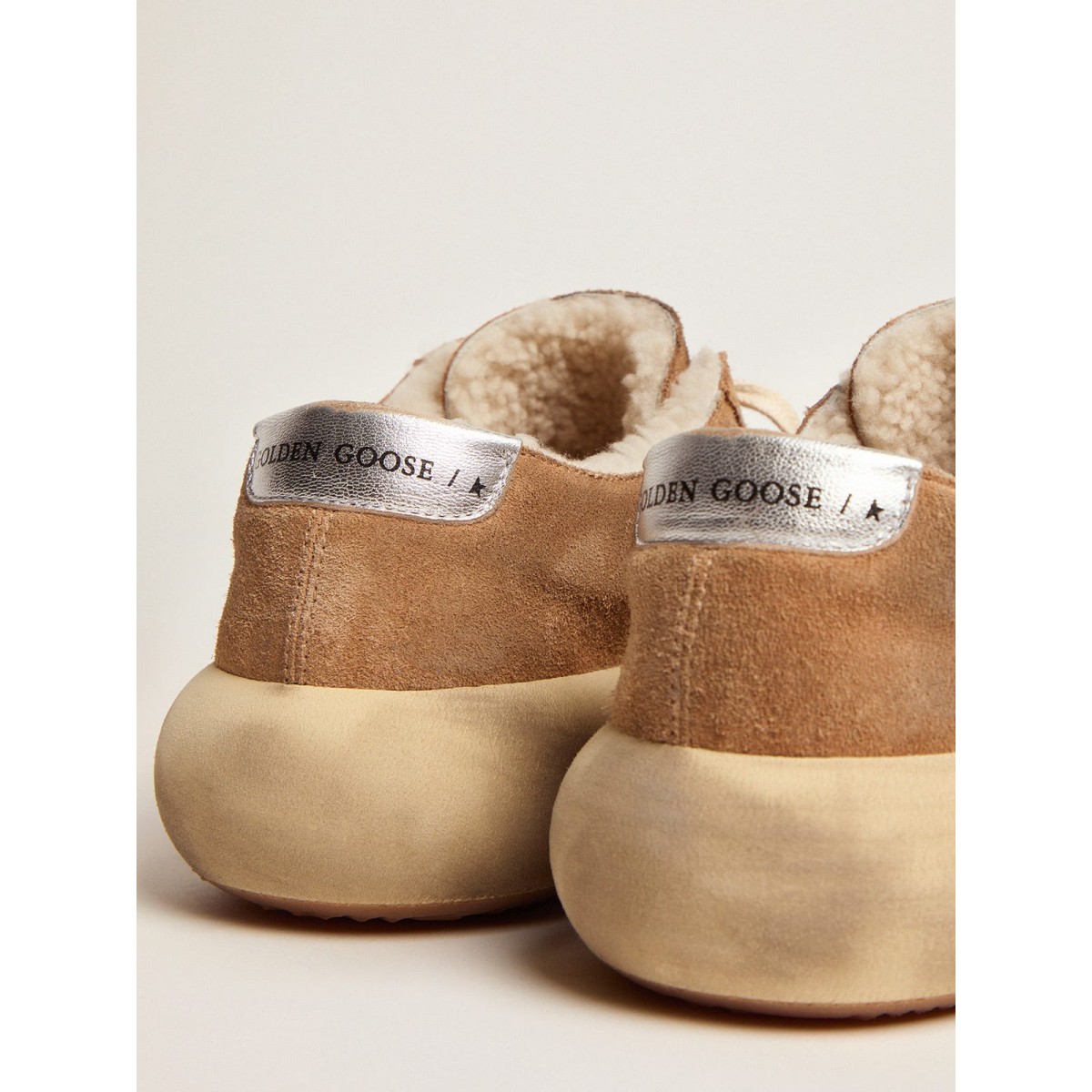Ihr neuer Moment, sich von der Realität zu lösen und wie nie zuvor zu fliegen. In dieses unglaubliche Gefühl der Leichtigkeit von der ersten Sekunde eingewickelt, um Platz für die kühnste Version von sich selbst zu schaffen. Schließlich freilegen Sie Ihren Stil frei und leeren Sie Ihren Geist. Die Space-Star-Schuhe verfügen über die extra Kissensohle und die mit Speicherschaum gepolsterte Innensohle und garantieren bei unvergleichlichem Komfort ab dem ersten Schritt. In tabakfarbenem Wildleder sticht diese Version der Männer aufgrund ihres perforierten Ton-auf-Tone-Sterns, der silberlaminierten Lederabsatzstab und der weichen Schleiffutter aus. .>Shearling Futter