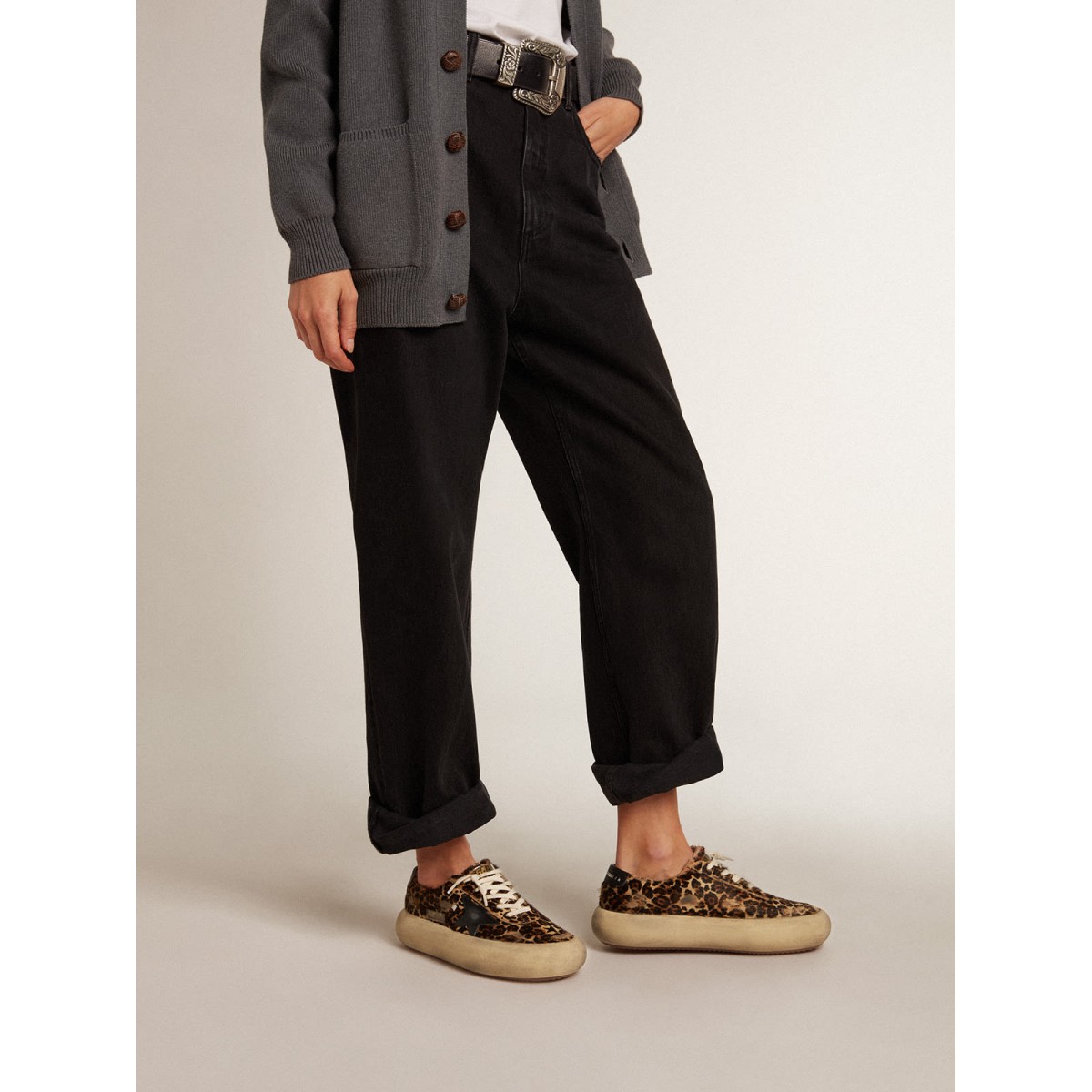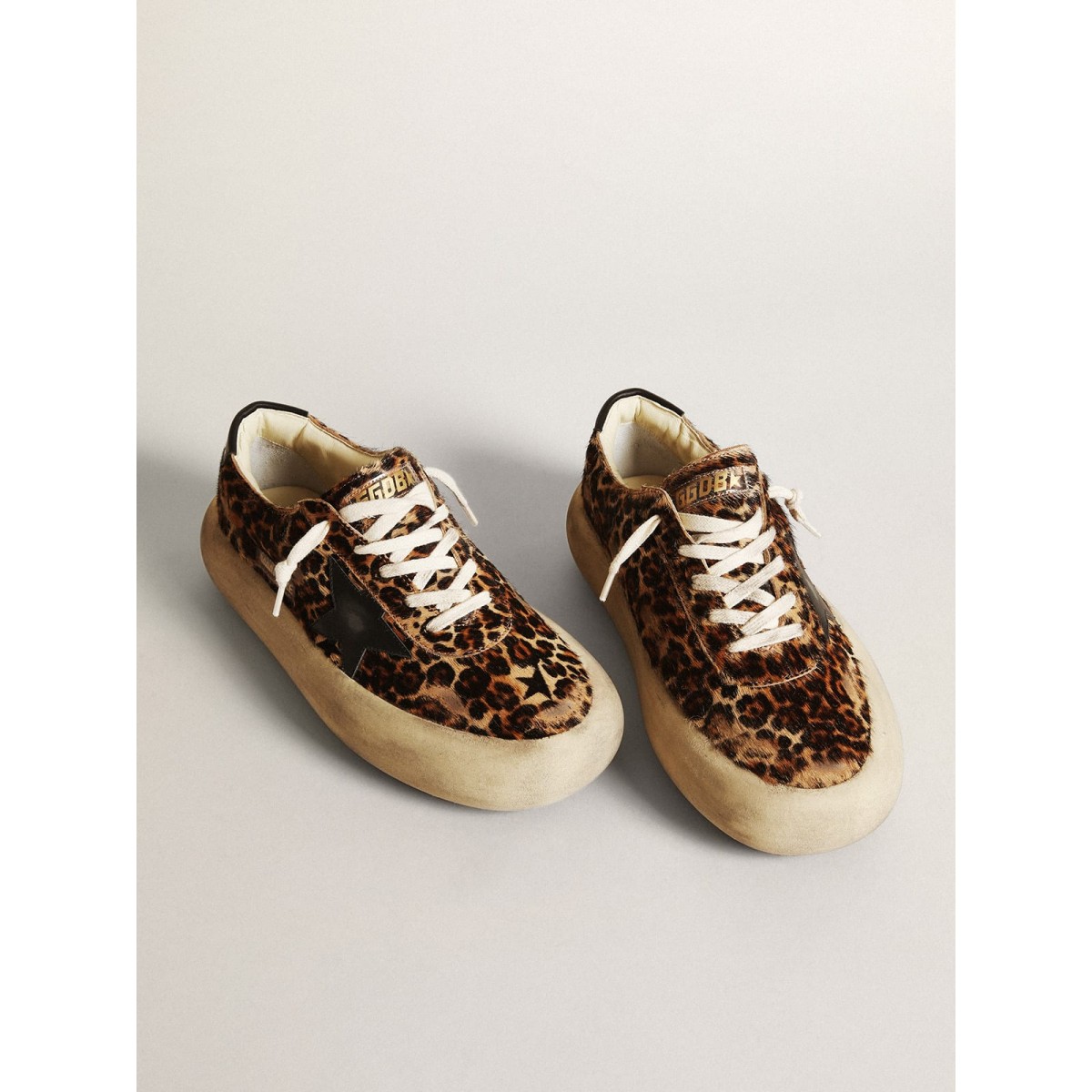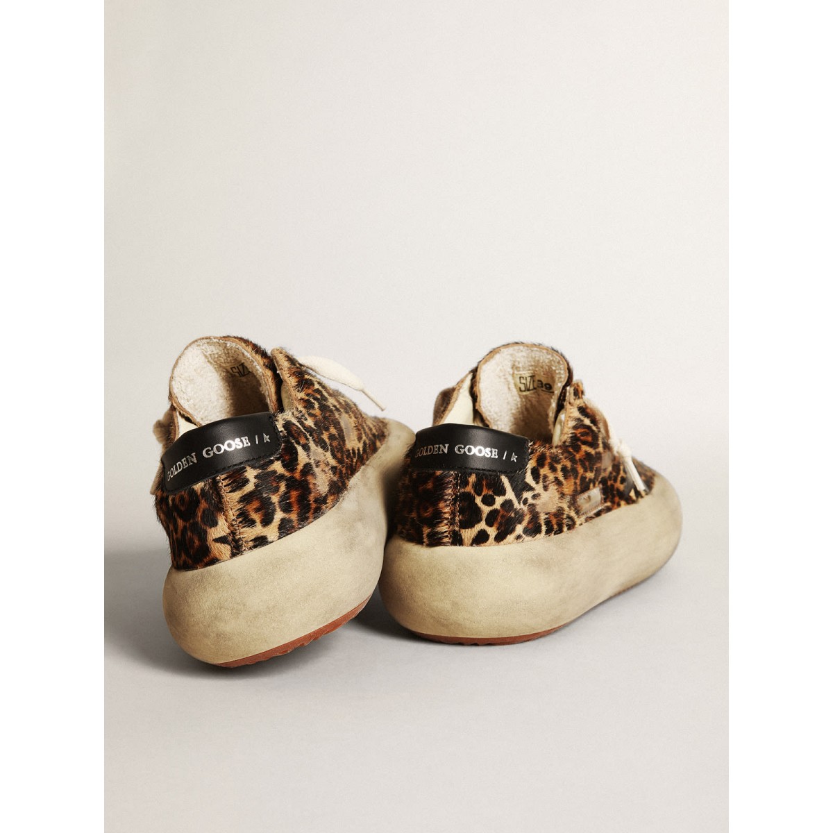 Golden Goose Space-Star-Schuhe in Leoparden-Druck-Pony-Haut mit schwarzem Lederstern und Fersen Tab GWF00378.f003305.81472