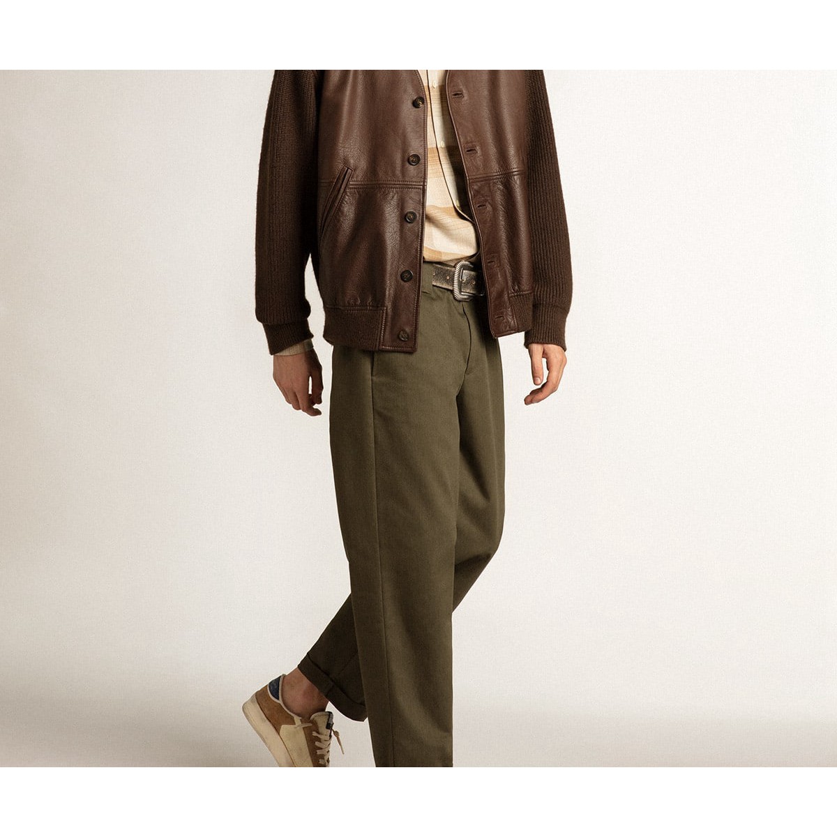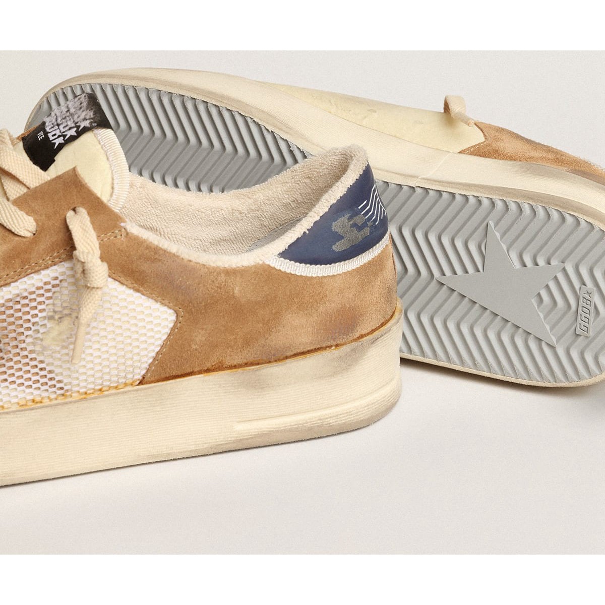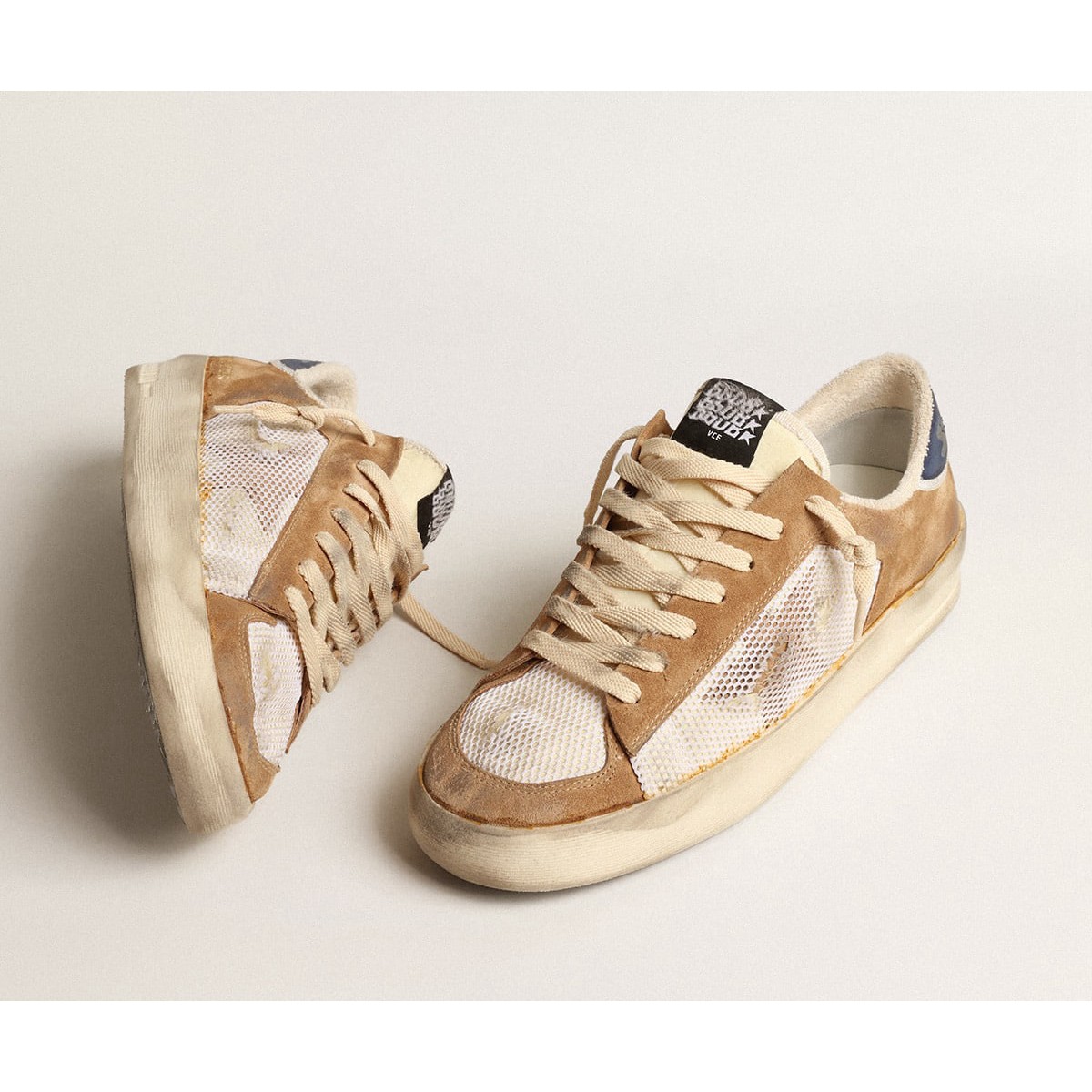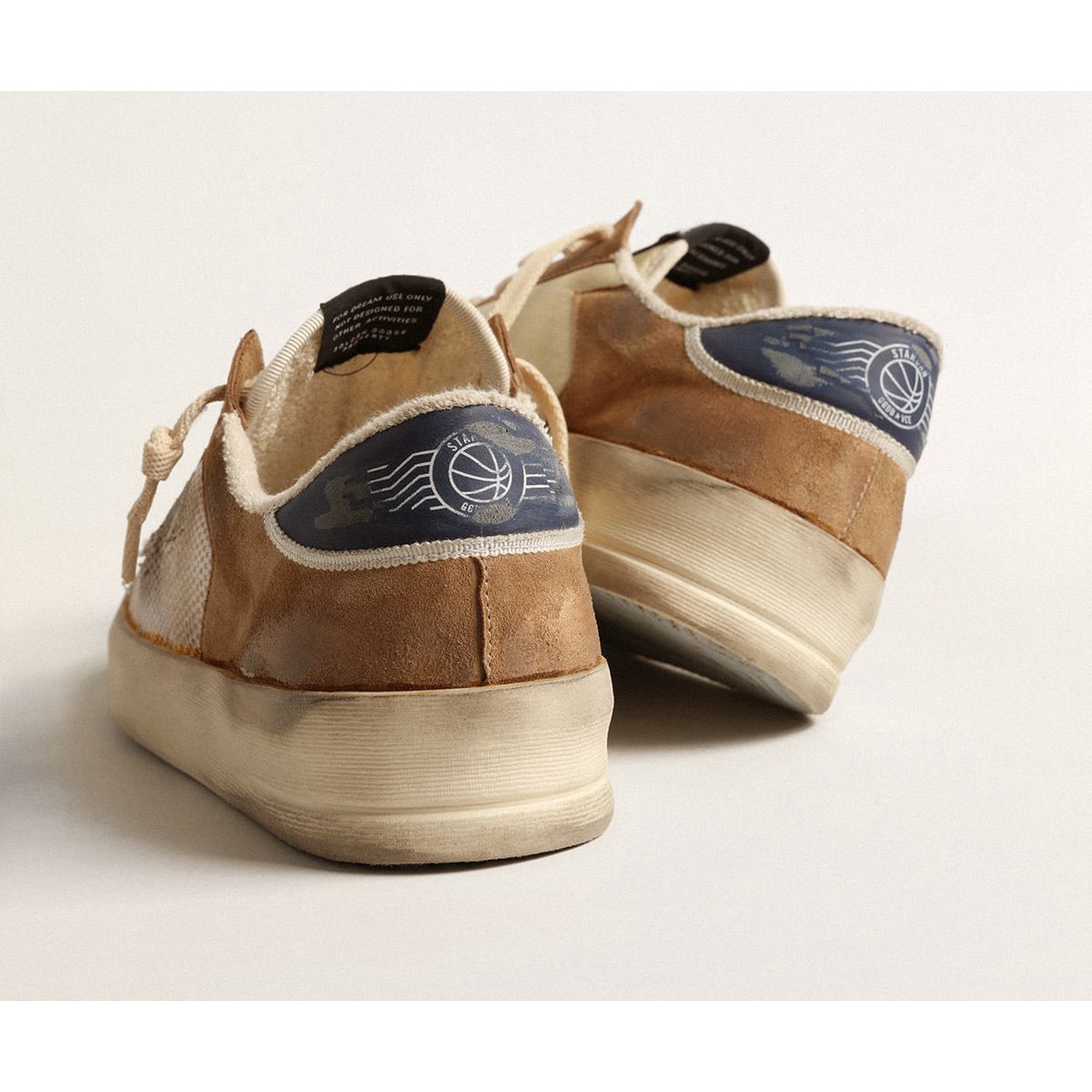 Golden Goose Männerstarte Sneaker in Beige Nylon und Mesh mit Tabak Wildleder -Einfügen GMF00479.f004077.82145