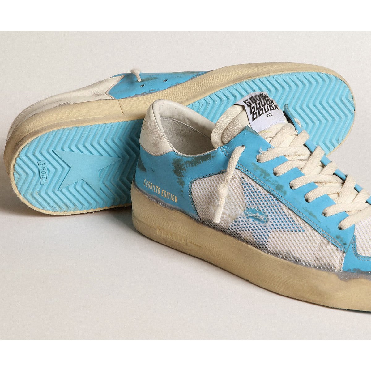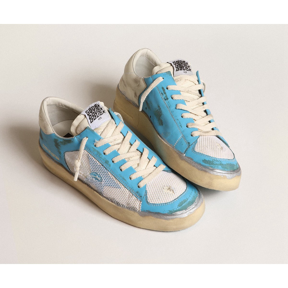 Golden Goose Stardan Turnschuhe Lab in hellblaues Nappa Leder und weißes Netz GMF00370.f004374.50492