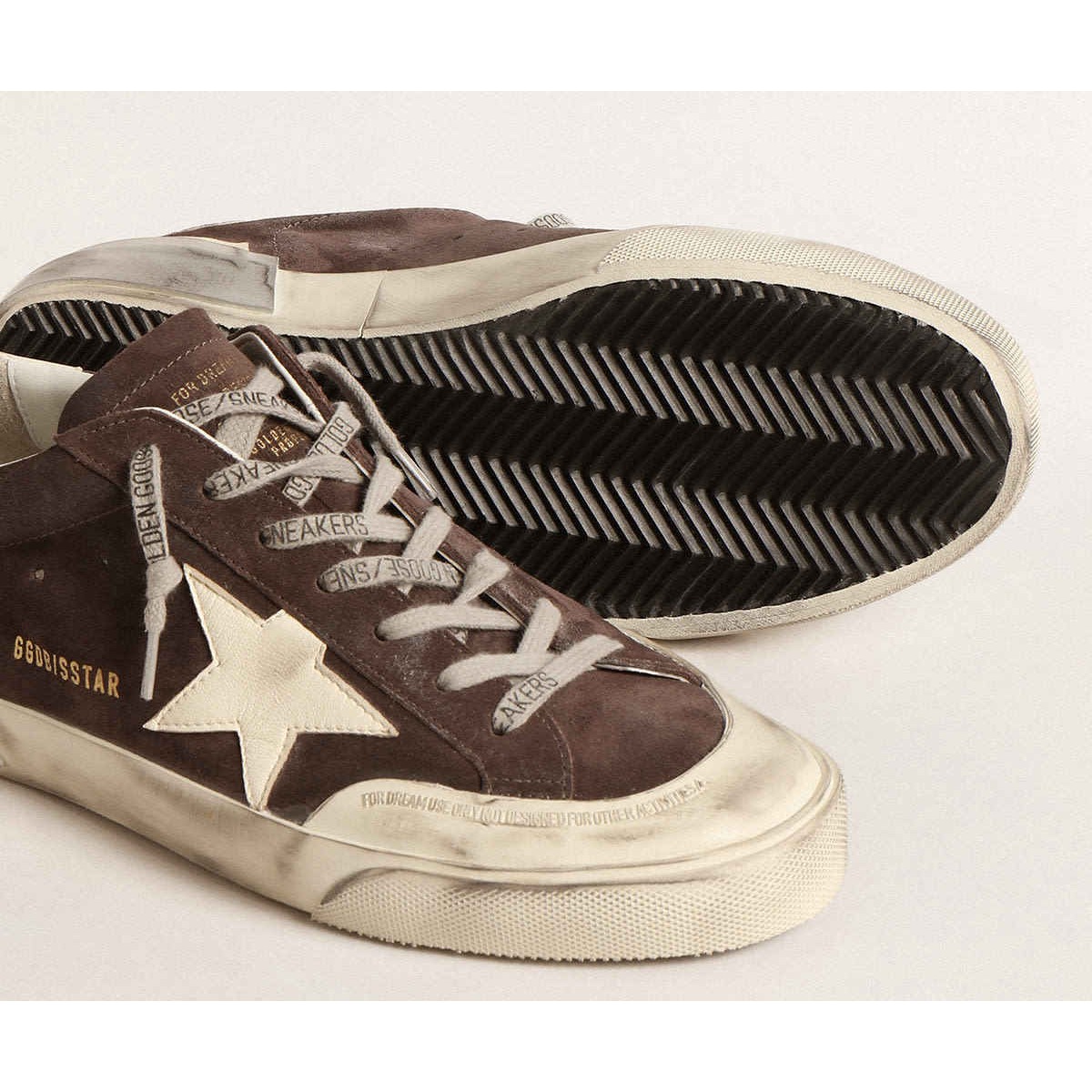 Eine zeitlose Ikone, die sich ständig weiterentwickelt. Bei Golden lieben wir es, unsere Klassiker zu nehmen und sie ständig zu überarbeiten, immer aus einem neuen Blickwinkel. Diese Superstar mit einem dunkelgrauen Wildleder-Obermaterial verfügen über einen Stern und eine Fersenlasche in Ecru Nappa-Leder. Das beige und silberne Multi-Foxing und die eisgrauen Schnürsenkel mit kontrastierendem schwarzem Logo fügen den Finishing-Touch hinzu. li>dunkelgraues Wildleder-Obermaterial