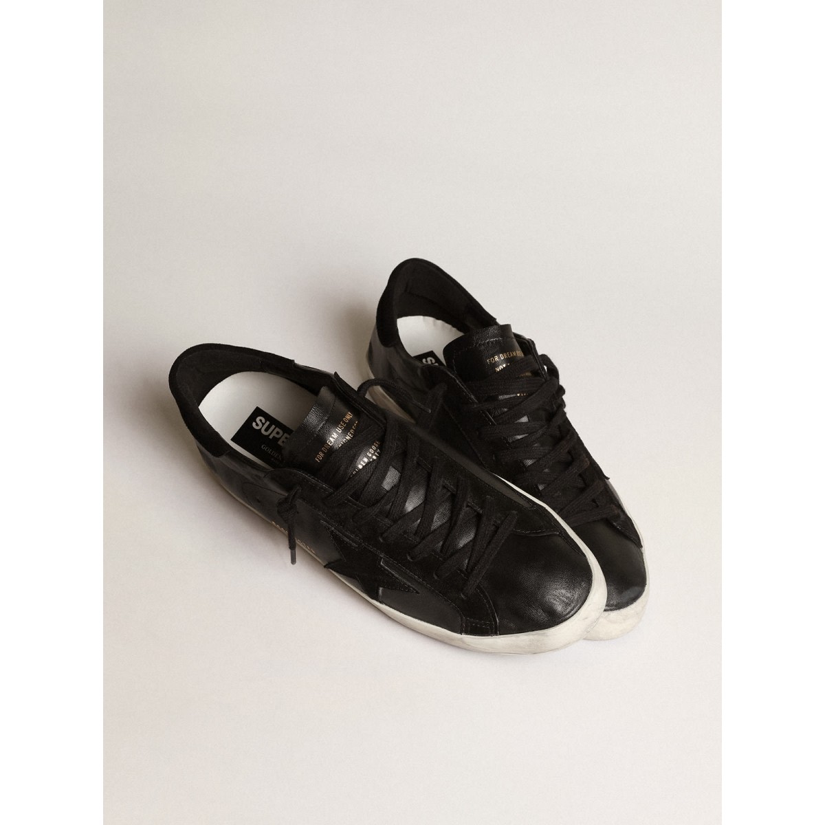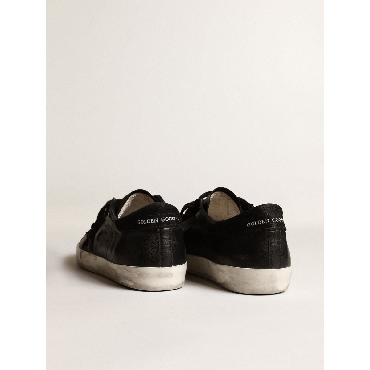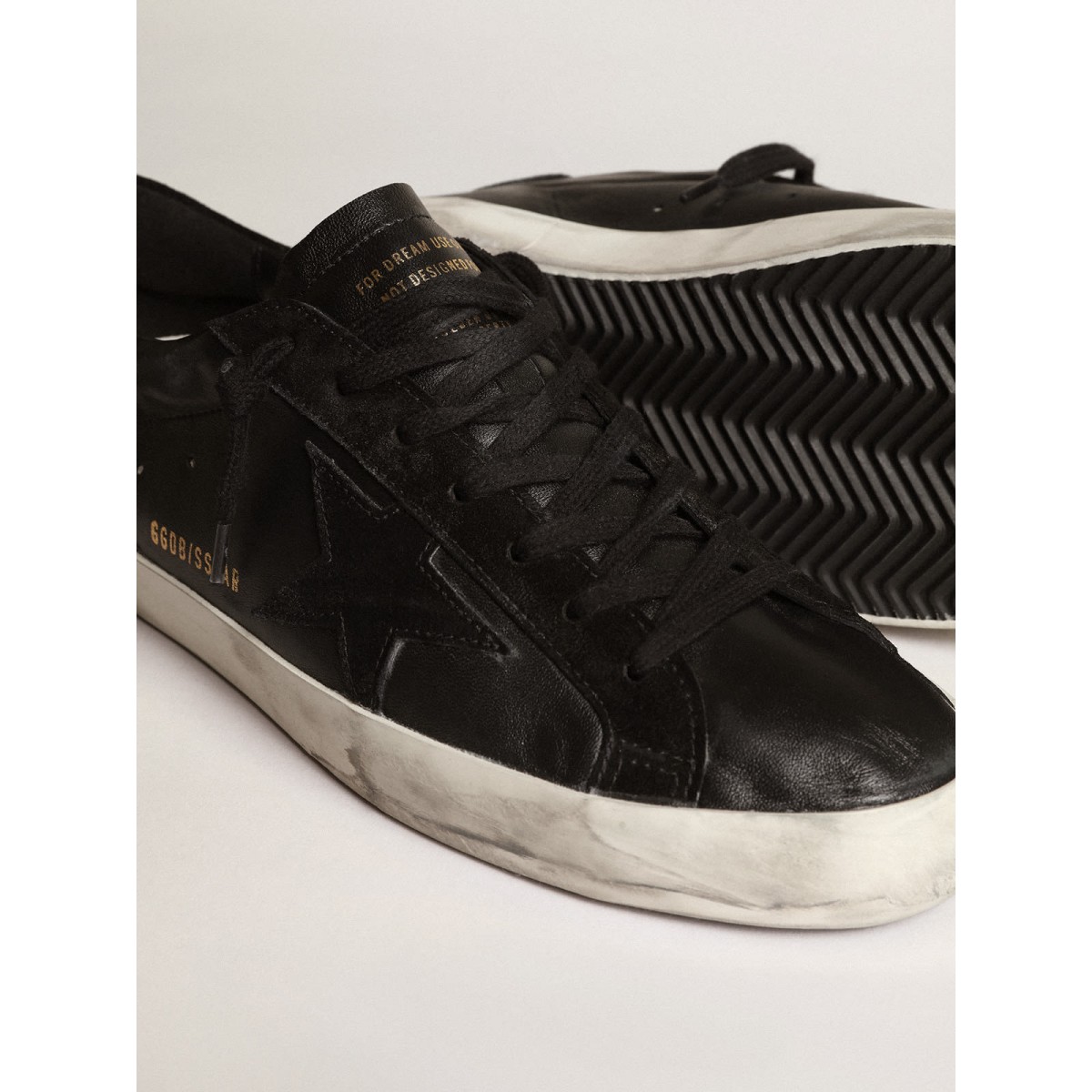 Golden Goose Super-Star in Black Nappa mit schwarzem Wildlederstar und Ferse Tab GMF00101.f003984.90100