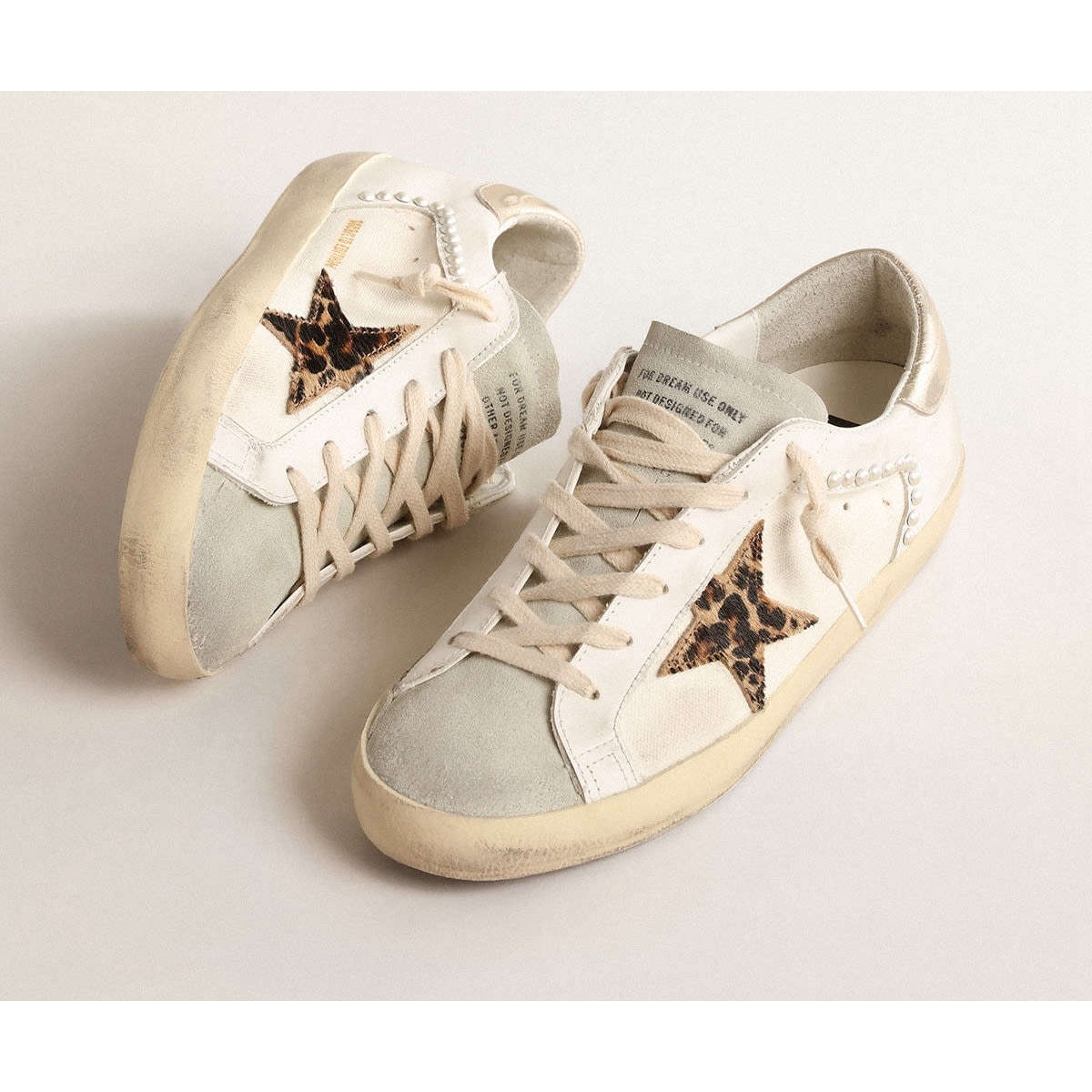 Golden Goose Women’s Super-Star Ltd in Leinwand und Leder mit Leoparden-Print-Pony-Skin-Stern