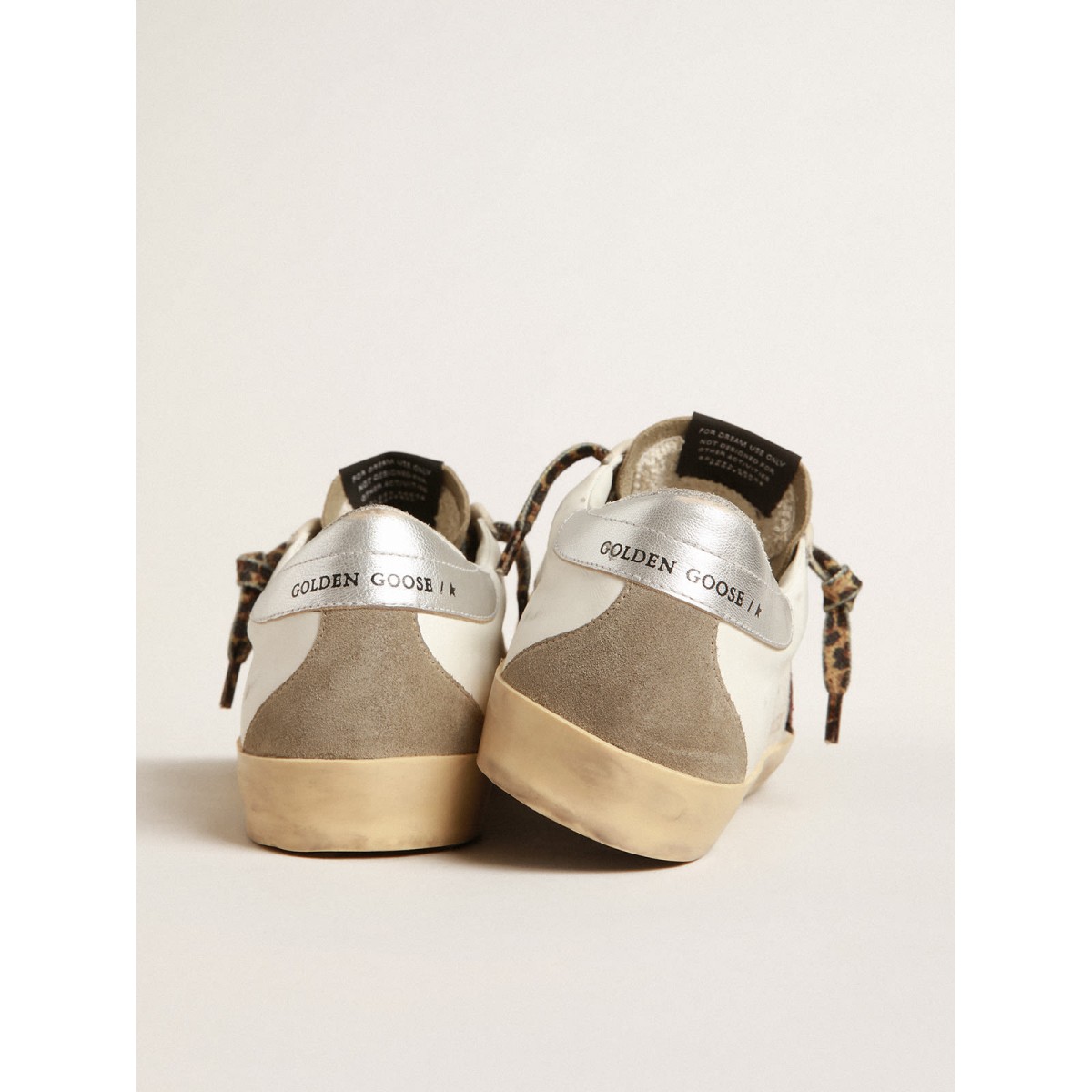 Eine zeitlose Ikone, die sich doch ständig weiterentwickelt. Bei Golden lieben wir es, unsere Klassiker zu nehmen und sie ständig zu überarbeiten, immer aus einem neuen Blickwinkel. Diese Superstar mit einem weißen Leder-Obermaterial verfügen über einen Burgunder-Glitzer-Stern, ein silberlaminiertes Laminat-Leder-Fersenlasche und ein dove-grauer Wildledereinsatz wie die Zunge und der Einsatz auf der Rückseite. Und die Schnürsenkel beige und brauner Leoparden-Print Fügen Sie den Finishing Touch hinzu.>