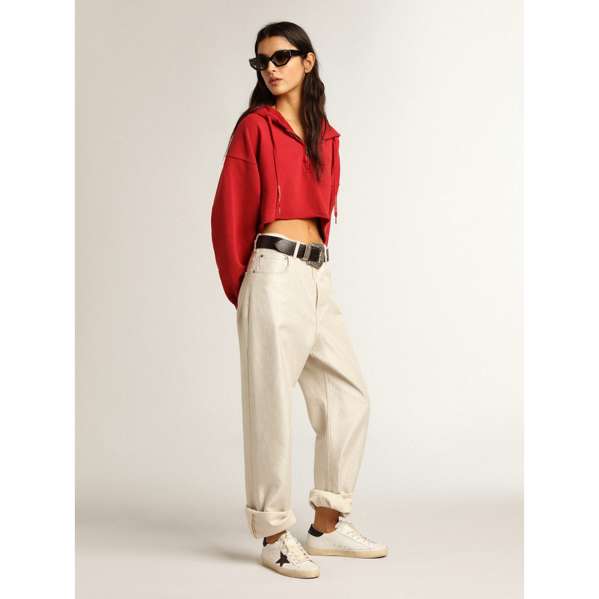 Eine zeitlose Ikone, die sich doch ständig weiterentwickelt. Bei Golden lieben wir es, unsere Klassiker zu nehmen und sie ständig zu überarbeiten, immer aus einem neuen Blickwinkel. Diese Super-Stern-Turnschuhe mit einem weißen Leder-Obermaterial bieten einen schwarzen Swarovski-Kristallstern und Fersenlasche. Und weiße Schnürsenkel Fügen Sie den letzten Schliff hinzu. Kristallstern