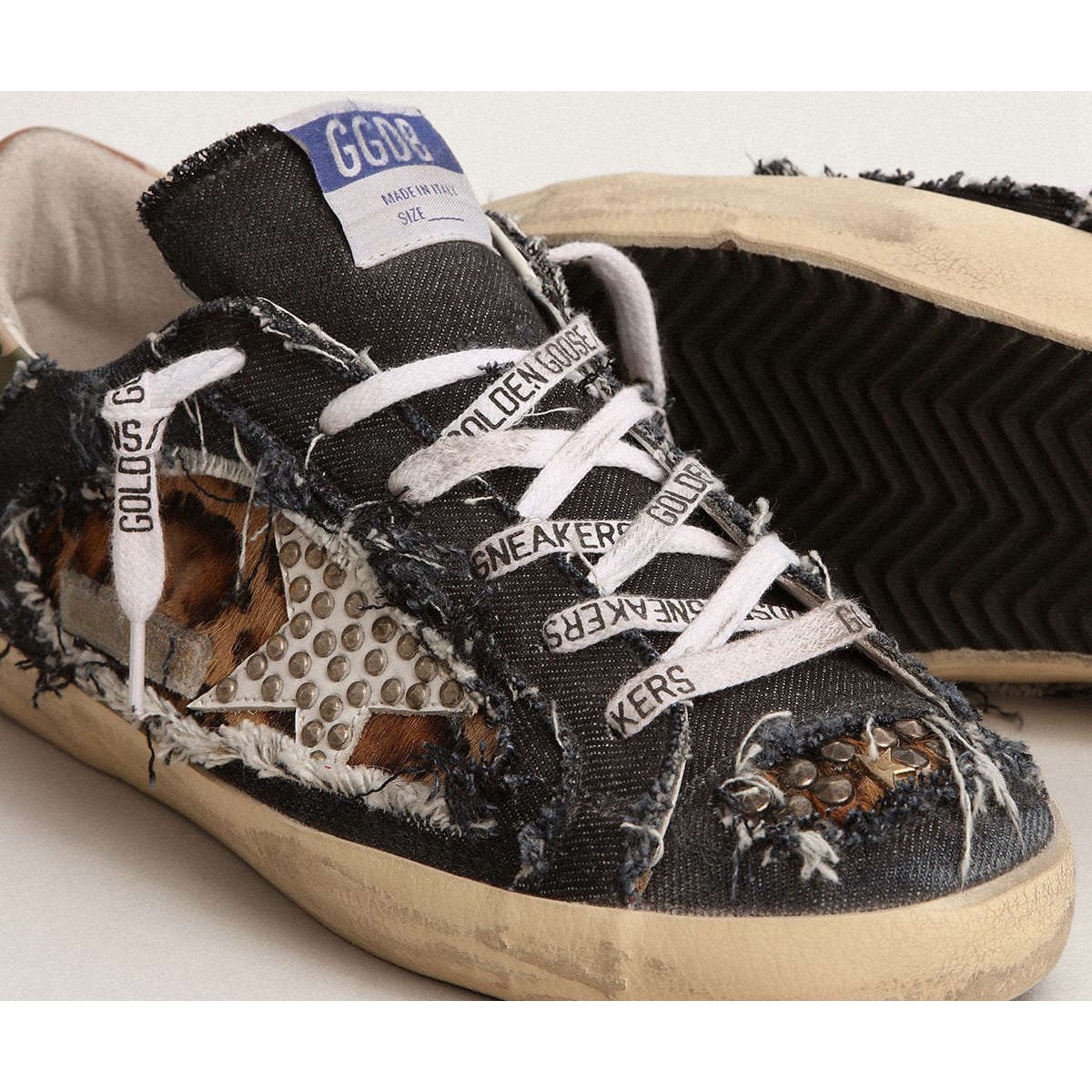 Golden Goose Frauen Super-Star-Sneakers Labor in Denim und Leopard-Print Pony Skin GWF00103.F002423.81468