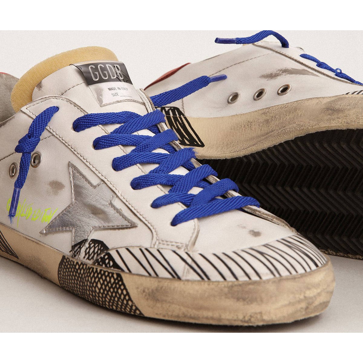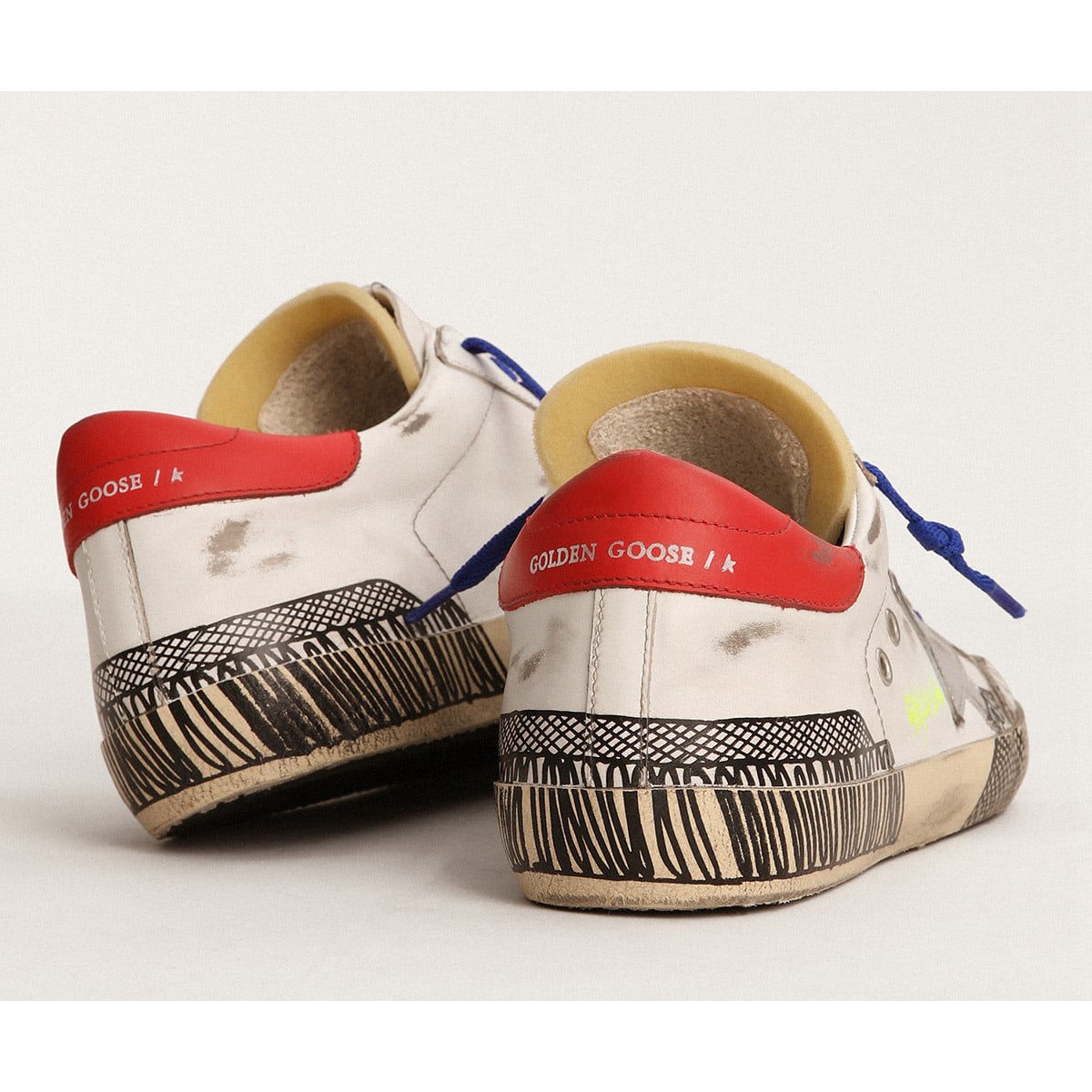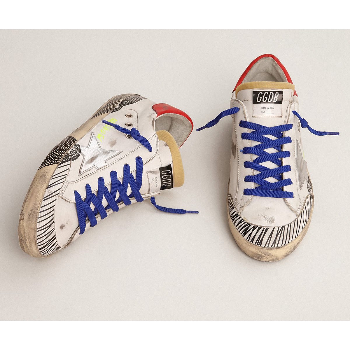 Golden Goose Damen-Super-Star-Sneakers Labor in weißem Leder und Multi-Foxing-Effekt-Druck GWF00107.F002401.10852