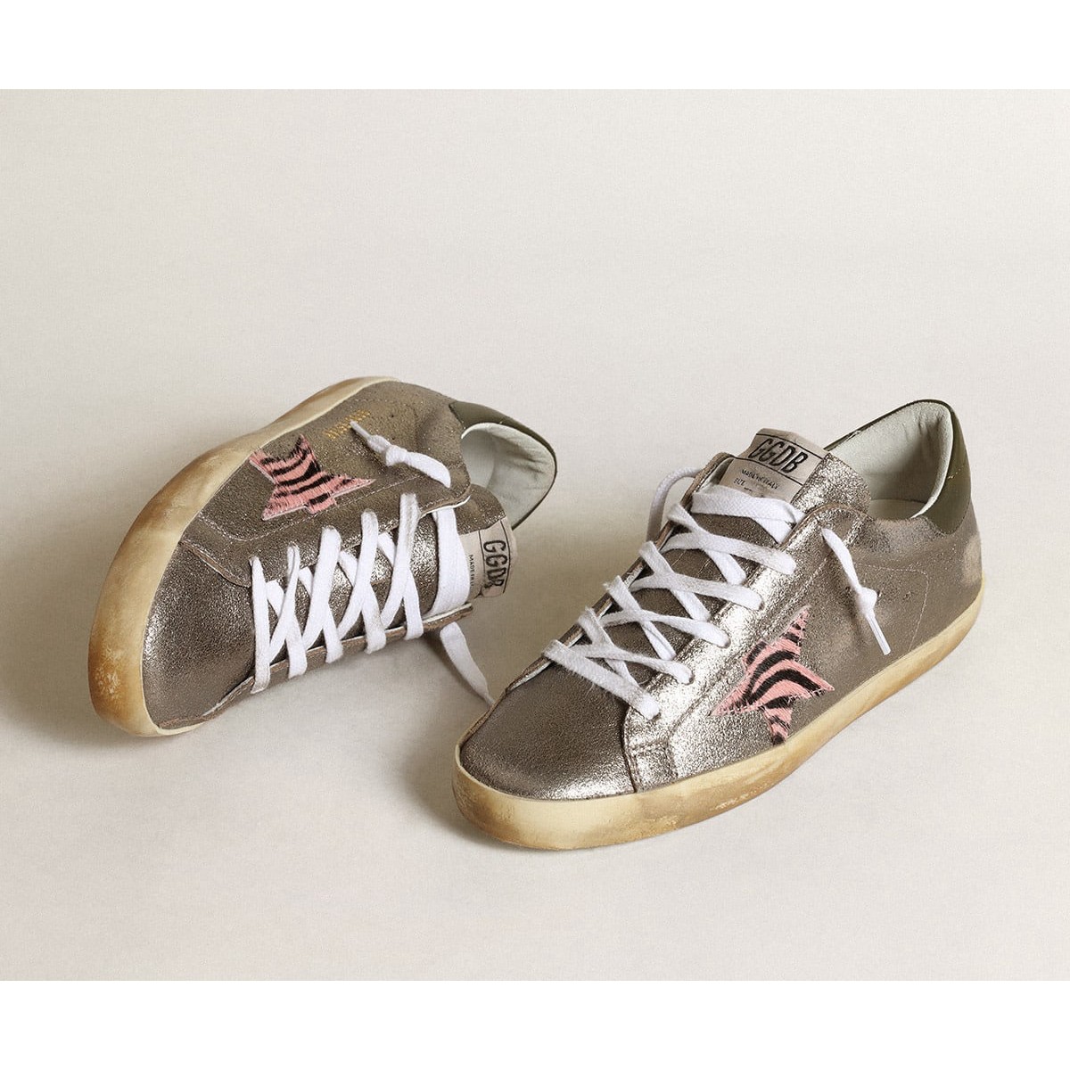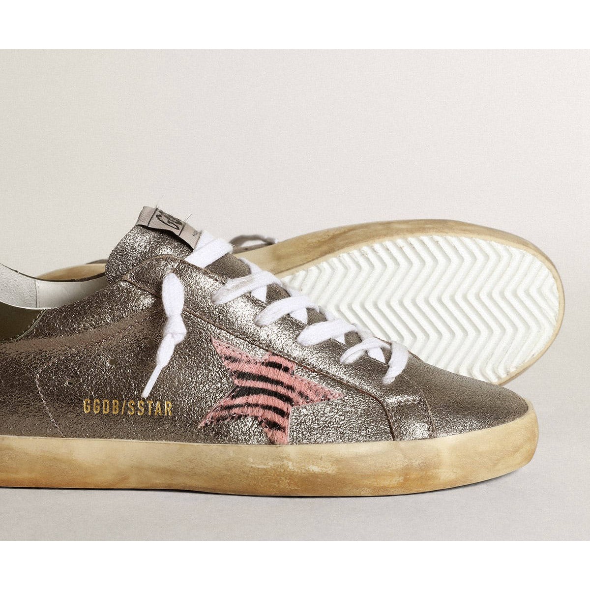 Golden Goose Frauen Super-Star Sneakers Ltd im grauen laminierten Wildleder mit einem Pony Skin Star GWF00101.f003391.60368