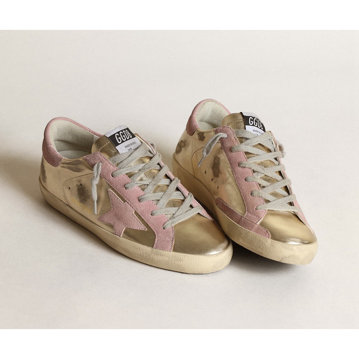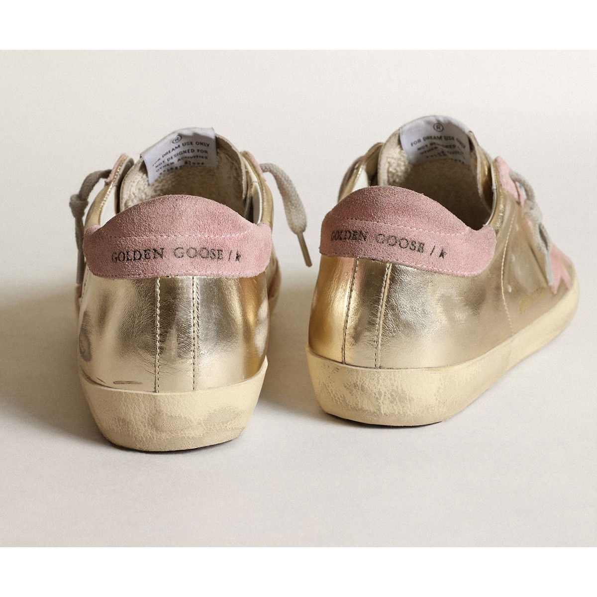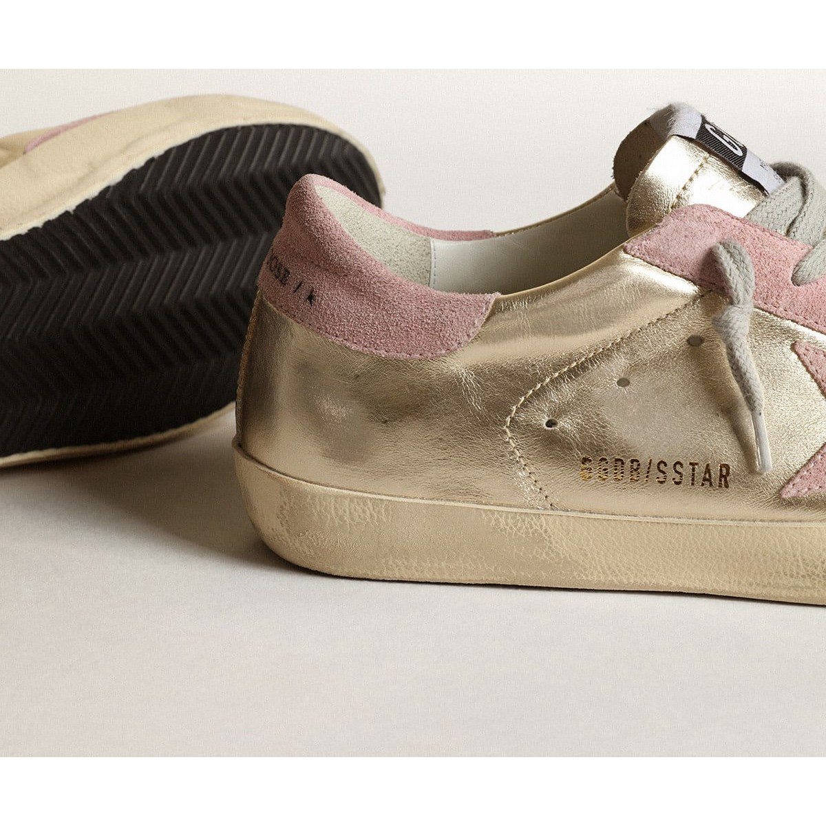 Golden Goose Frauen Super-Star Sneakers Ltd in Platin-Laminat-Leder und rosa Stern GWF00101.F003360.65170