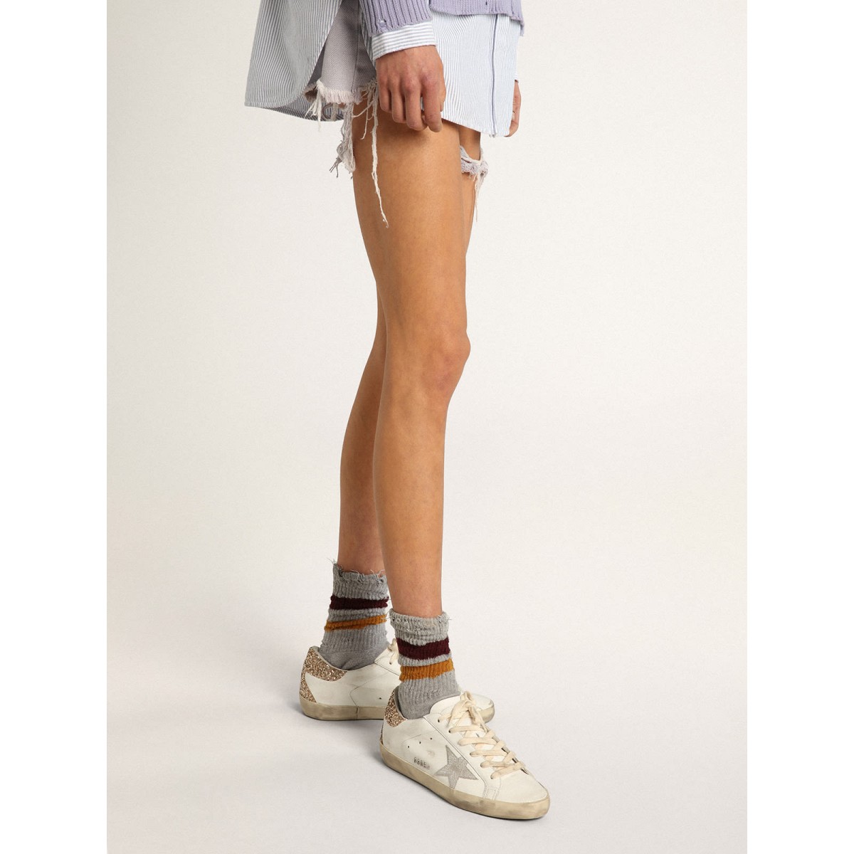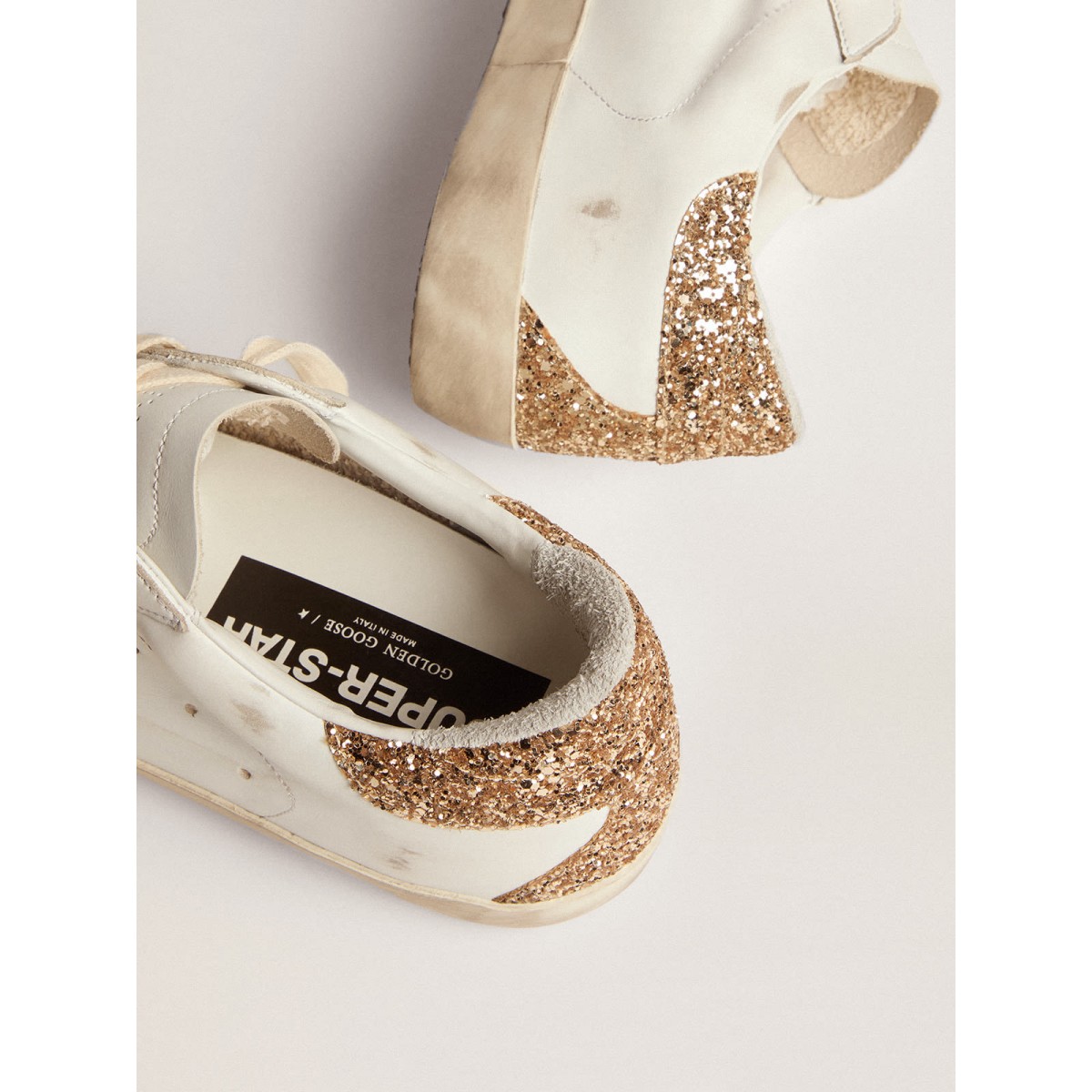 Eine zeitlose Ikone, die sich doch ständig weiterentwickelt. Bei Golden lieben wir es, unsere Klassiker zu nehmen und sie ständig zu überarbeiten, immer aus einem neuen Blickwinkel. Diese Super-Stern-Turnschuhe mit einem weißen Leder-Obermaterial bieten einen Snake-Print-Silber-Lederstern und eine goldene Glitzerabsatzstab. Die GGDB-Schriftzeichen und cremefarbene Schnürsenkel in Galvanic Silver Metal Fügen Sie den Finishing-Touch hinzu.