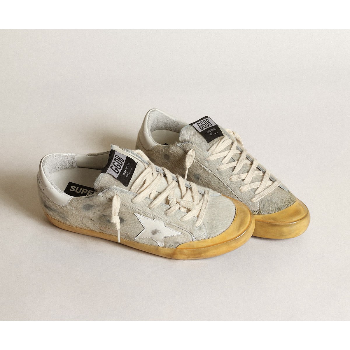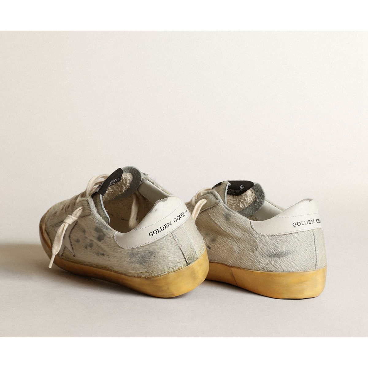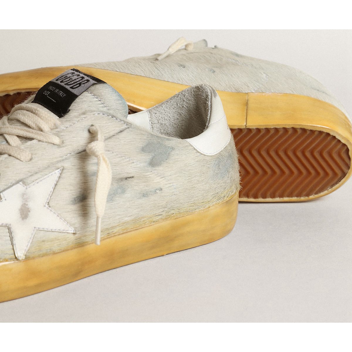 Golden Goose Damen Super-Star Sneakers Penstar in cremesweißer Pony-Haut mit weißem Lederstern und Fersen-Tab GWF00107.f003458.10100