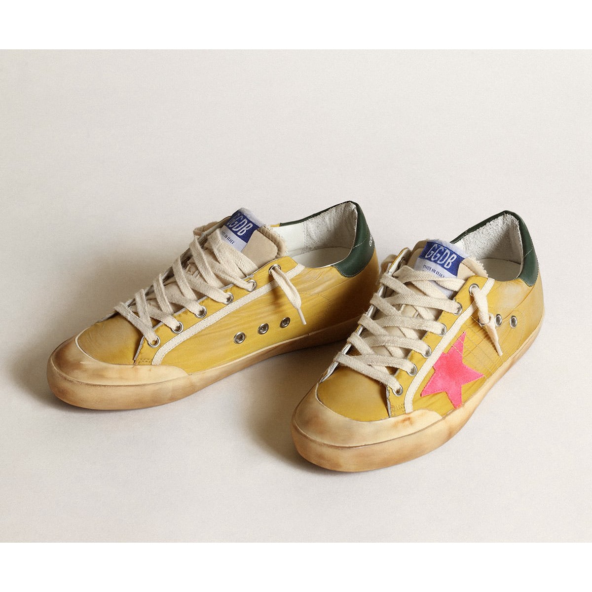 Golden Goose Frauen Super-Star-Sneakers Penstar in Senf-Farben-Nylon- und Hummerstar GWF00366.F003424.20308