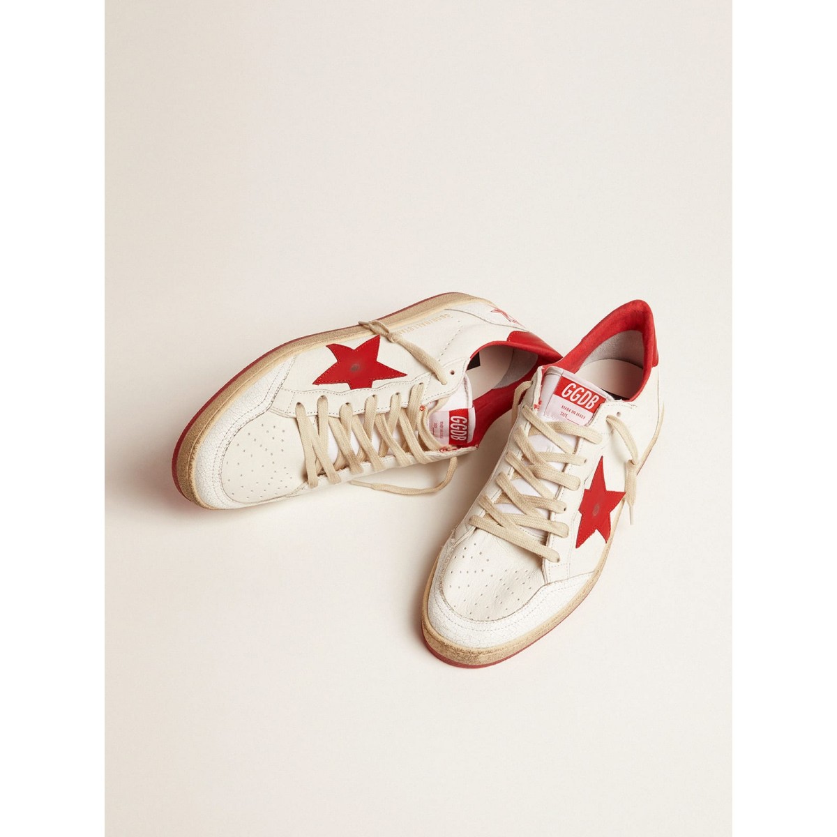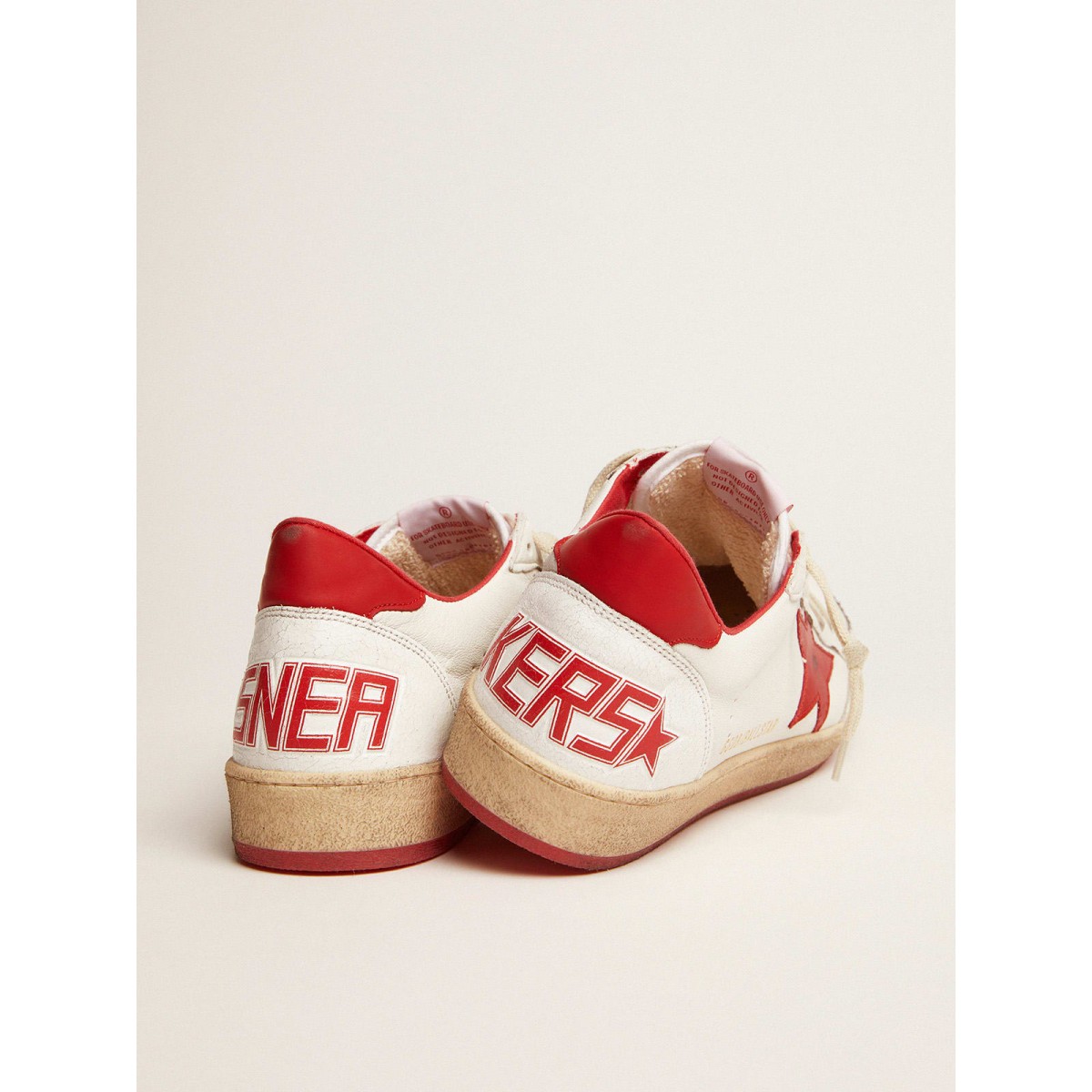 Golden Goose White Ball Star Turnschuhe in Leder mit Red Star und Ferse Tab GMF00117.F000325.10275