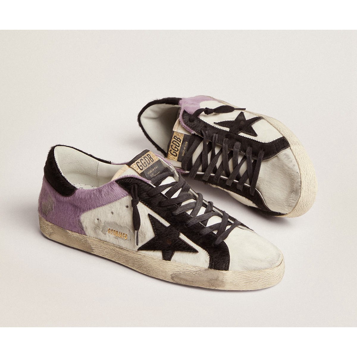 Super-Stern-Turnschuhe der Golden Goose Herren in White und Lila Pony Skin GMF00103.F003024.80418