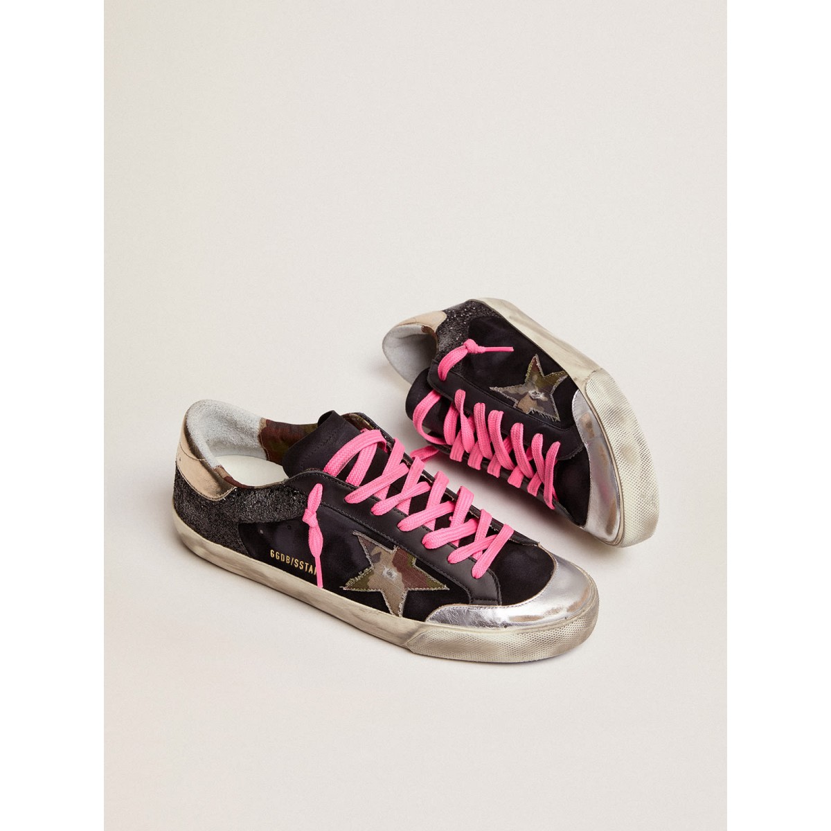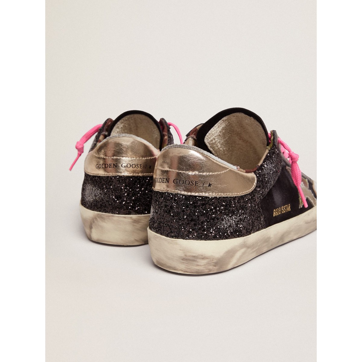 Be the first to review “Super-Star-Turnschuhe Golden Goose im schwarzen Glitzer und Wildleder mit Tarnstoffstar GMF00108.f003071.81728”