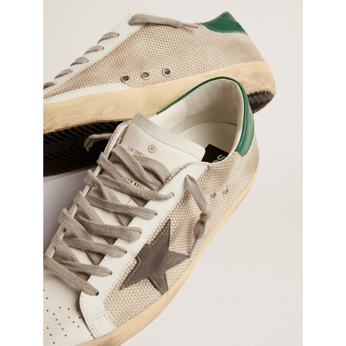 Eine zeitlose Ikone, die sich doch ständig weiterentwickelt. Bei Golden lieben wir es, unsere Klassiker zu nehmen und sie ständig zu überarbeiten, immer aus einem neuen Blickwinkel. Dieses Modell mit weißer Lederzunge und Einsätzen verfügt über ein oberes oberes in hell silbernes Netz mit einem grauen Wildlederstern und einer grünen Lederabsatzlasche. Eisgrauen Schnürsenkel Fügen Sie den letzten Schliff hinzu. Grey Suede Stern