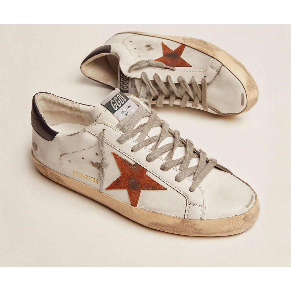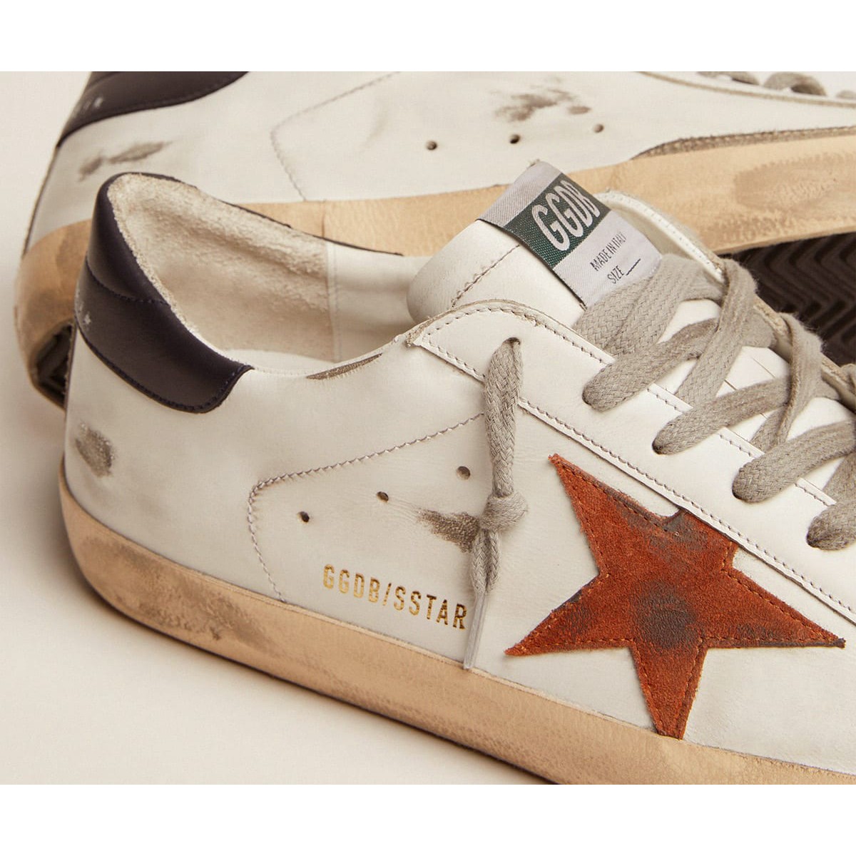 Super-Star-Sneaker für Männer mit orangefarbenem Wildleder und dunkelblauer Lederabsatz-Tab GMF00101.f002120.10787