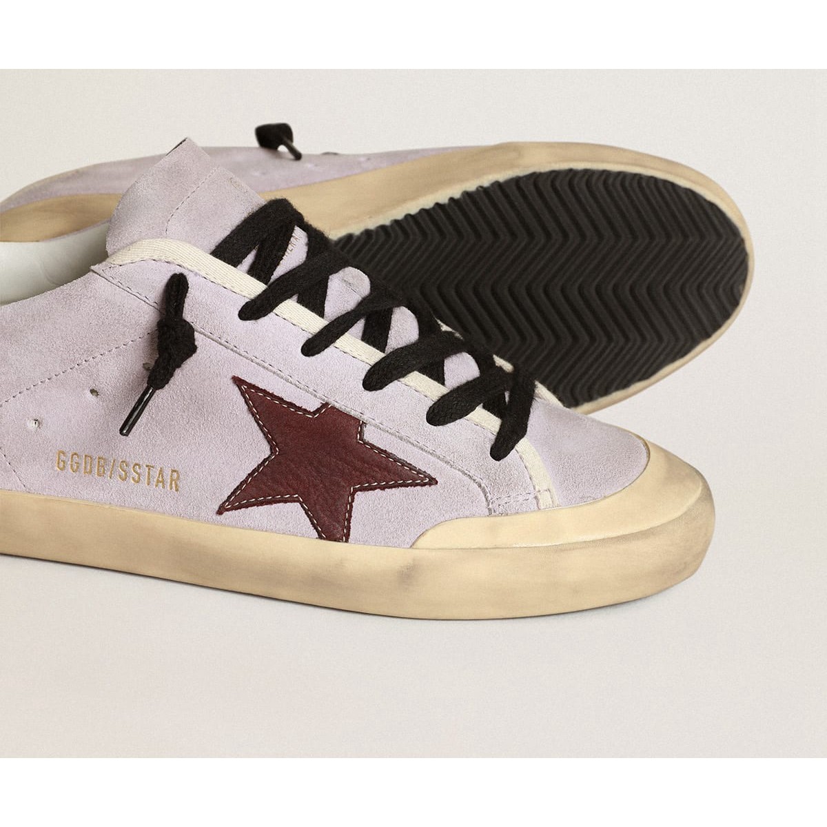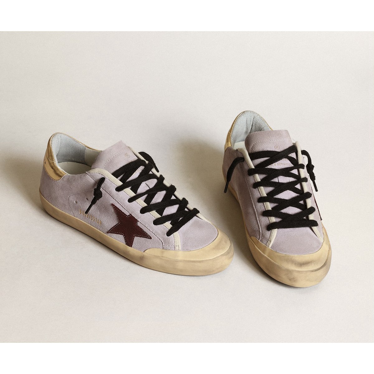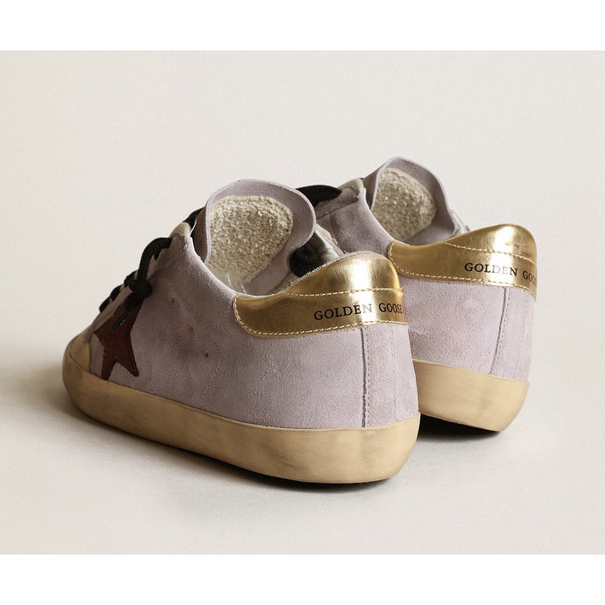 Golden Gans Super-Stern-Supersneaker in Flilac Wildleder mit einem braunen Stern und Gold Heel Tab GWF00107.f003421.45381