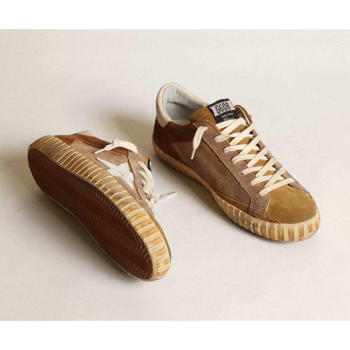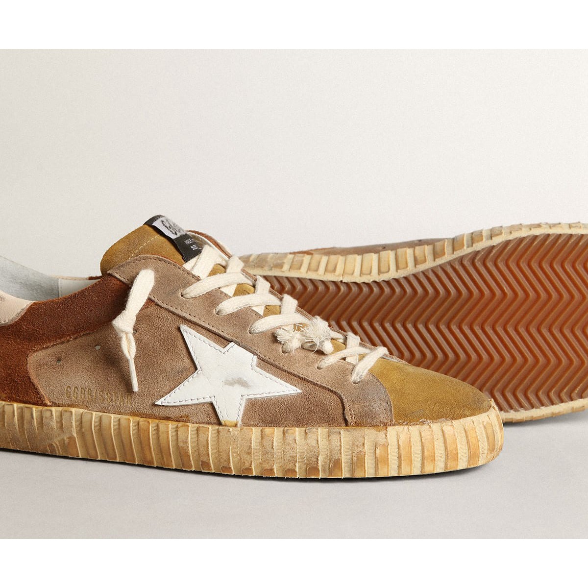 Ein zeitloses Symbol, das sich dennoch weiterentwickelt. Bei Golden lieben wir es, unsere Klassiker zu nehmen und sie ständig zu überarbeiten, immer aus einem neuen Blickwinkel. Dieses Herrenmodell mit Tabak und braunem Wildleder -Obermodell verfügt über einen weißen Lederstern und einen leichten beige Nappa -Leder -Fersenschub. Die mit Kamelfarben gefärbte Wildlederzunge und cremefarbene Schnürsenkel Fügen Sie den Finishing-Touch hinzu. und braunes Wildleder-Obermaterial