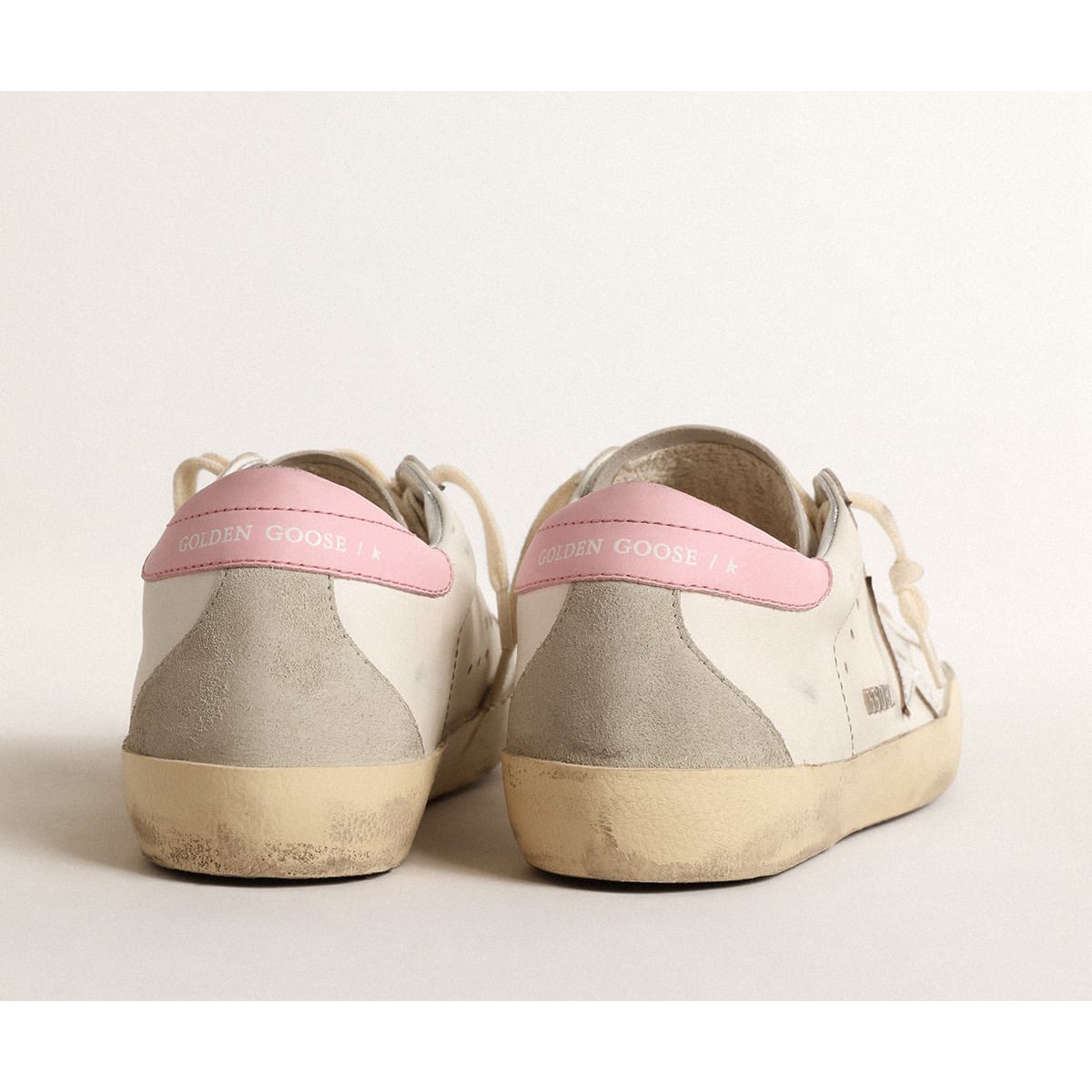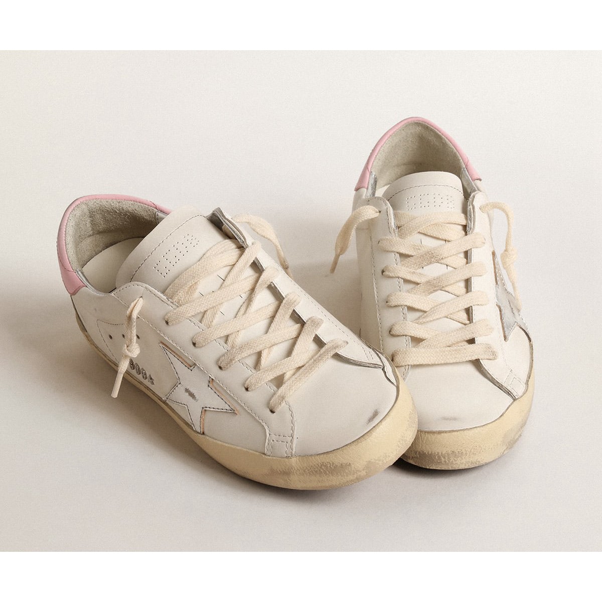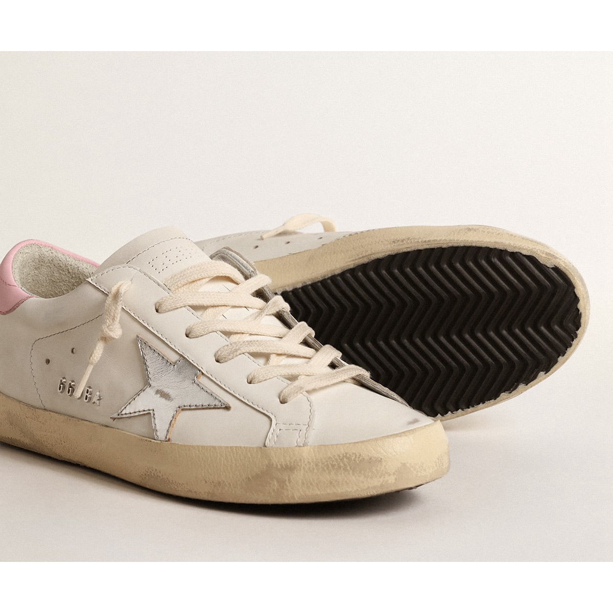 Super-Star-Sneaker für Frauen mit silbernen Lederstern und rosa Absatz-Tab GWF00102.F0046622.11531