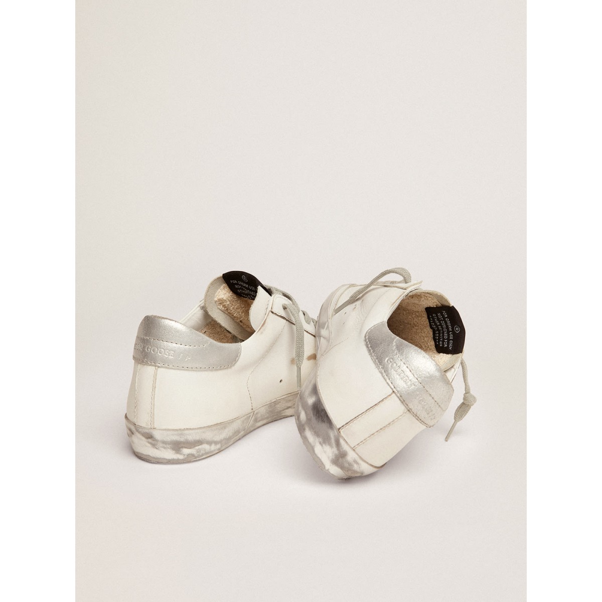 Super-Stern-Sneaker sind immer goldener Gänse-Evergreen und begleiten seine Sammlungssaison nach der Saison dank der Verwendung innovativer Materialien und Oberflächen. Glänzende Details mit Silver Sparkle Foxing, kombiniert mit einem GGDB -Stern und einer koordinierten Fersen -Tab verleihen ihm ein unterhaltsames zeitgemäßes Gefühl. Dieser Stil verfügt über Metallschriften. : 60% Cowhide-Leder, 40% Baumwolle