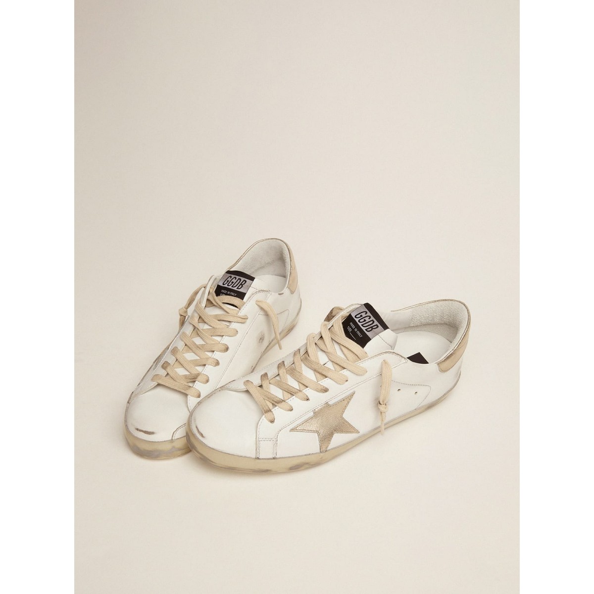 Herren-Super-Star-Turnschuhe sind ein immergrünes Golden Gänse und begleiten seine Sammlungssaison nach der Saison dank der Verwendung innovativer Materialien und Oberflächen. Glänzende Details wie das Gold Sparkle Foxing, kombiniert mit dem koordinierten GGDB -Stern und Fersen -Tab geben ihnen ein unterhaltsames zeitgemäßes Gefühl. Dieser Stil enthält Metallschriften. : 60% Kuhleder, 40% Baumwolle